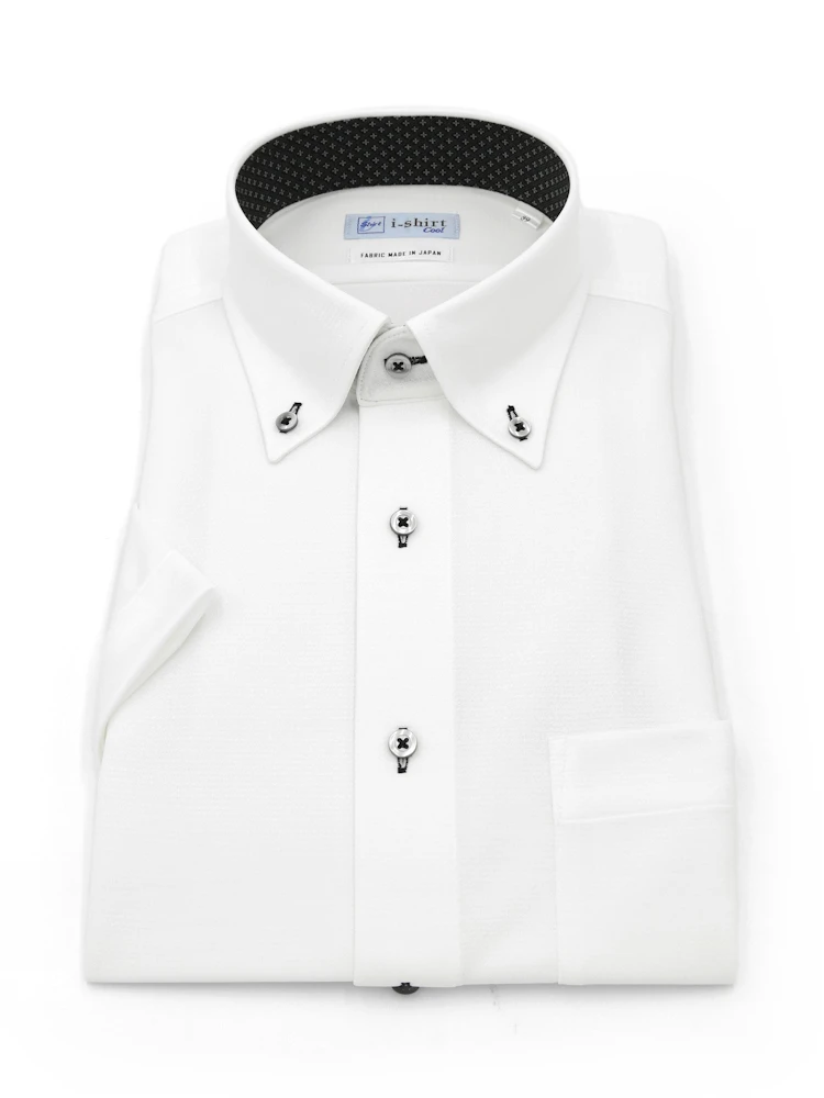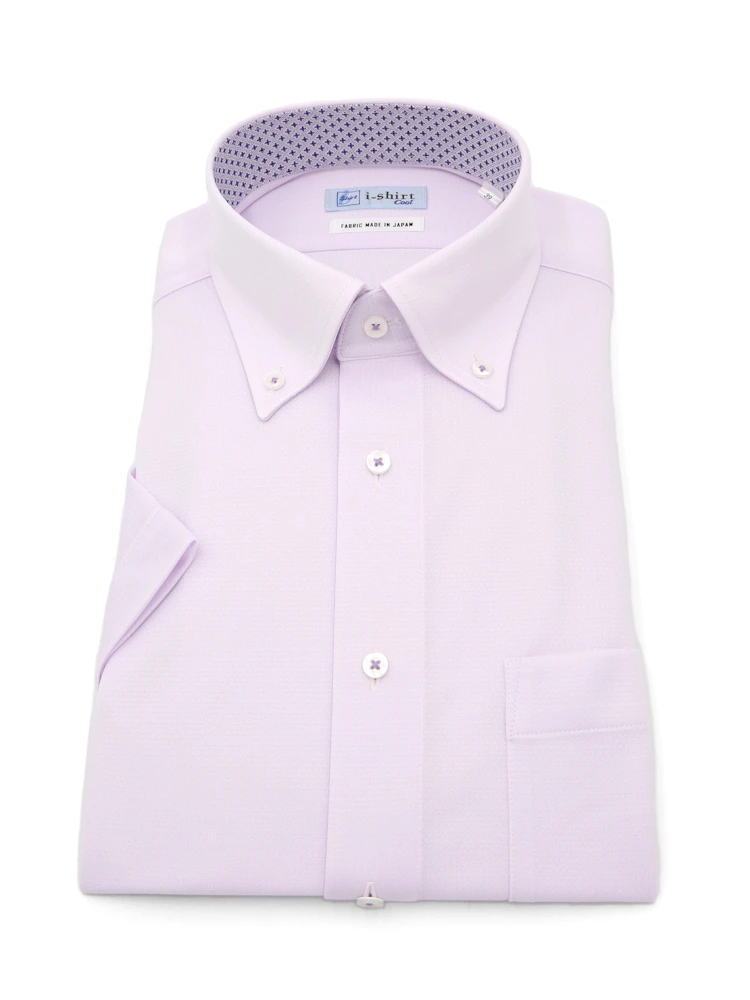• ブルー 【完全ノーアイロン】半袖アイシャツ ボタンダウン【DRY AIR生地使用】通気性 チドリ 織柄無地 ワイシャツ i-shirt 春夏 1185770075