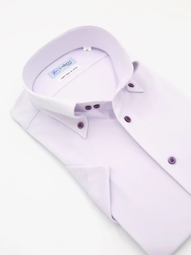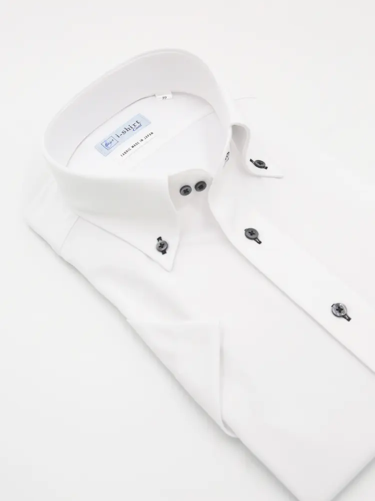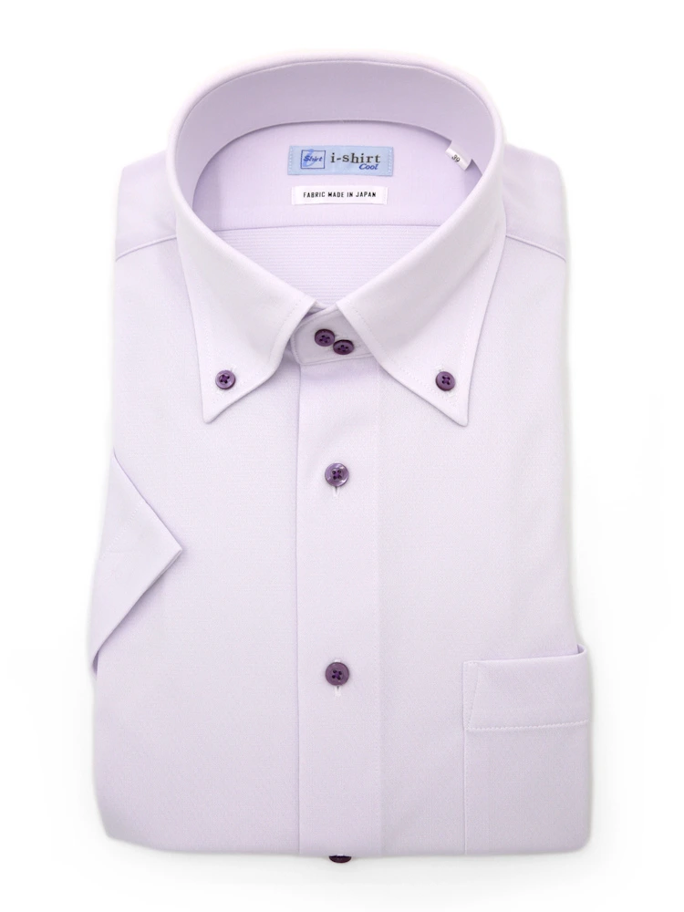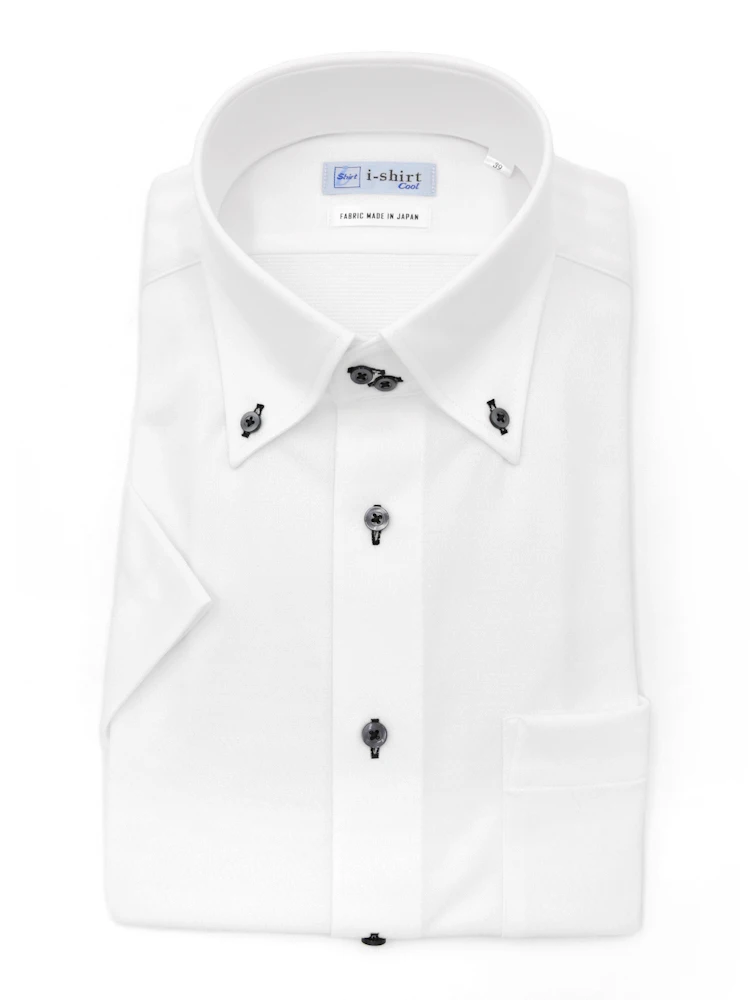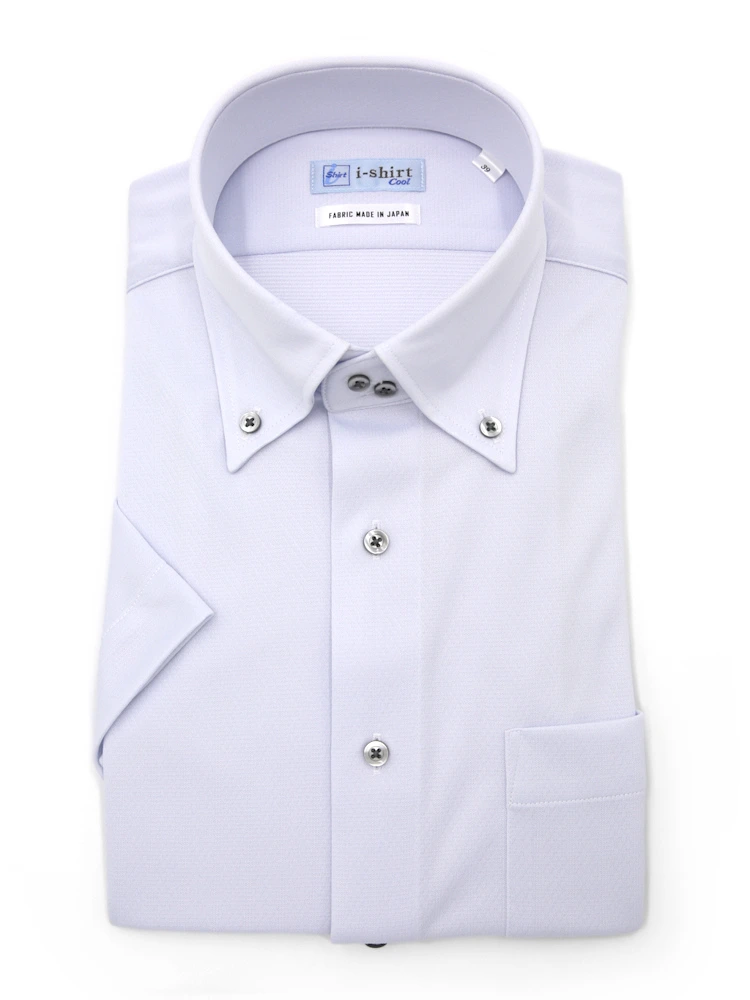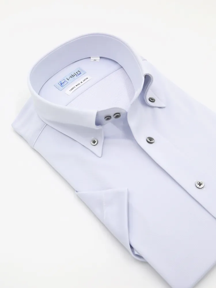 【完全ノーアイロン】半袖アイシャツボタンダウン【バイオセンサークール生地使用】高通気冷感織柄無地ワイシャツi-shirt春夏