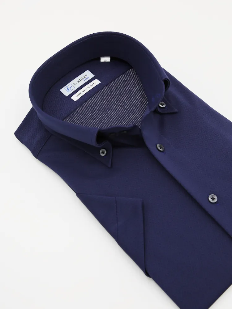 【即納】WEB限定【完全ノーアイロン】半袖アイシャツボタンダウンストレッチ織柄無地i-shirt春夏