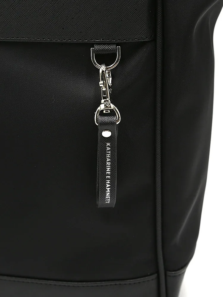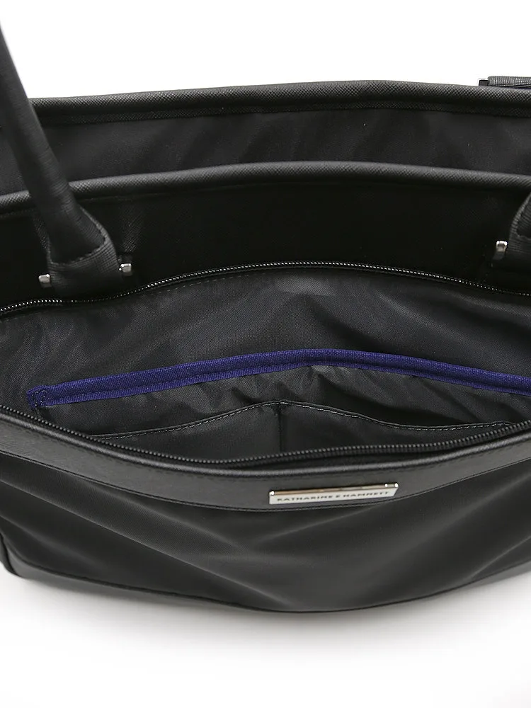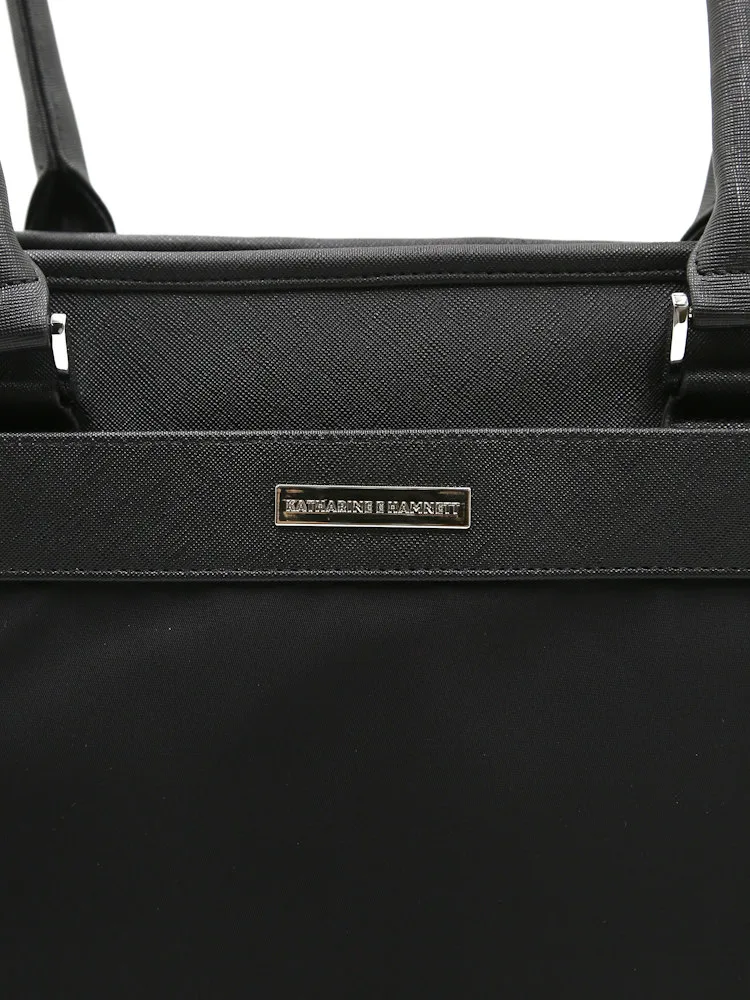 【KATHARINEEHAMNETT-キャサリン・イー・ハムネット-】トートバックナイロン×サフィアーノ調多収納無地通年