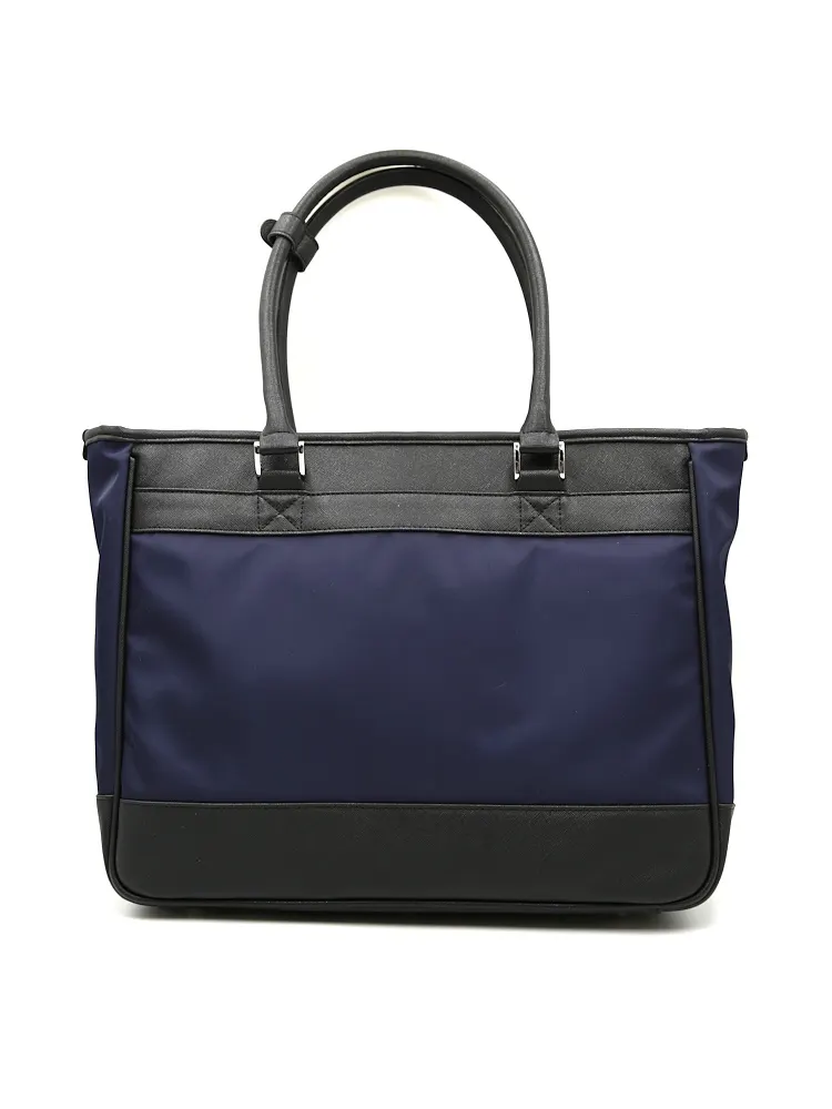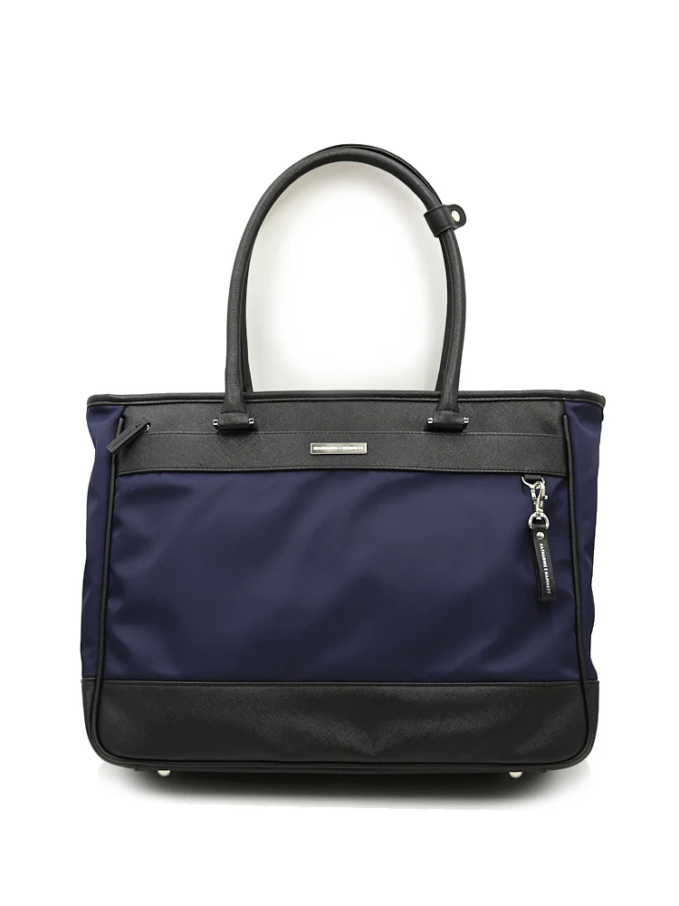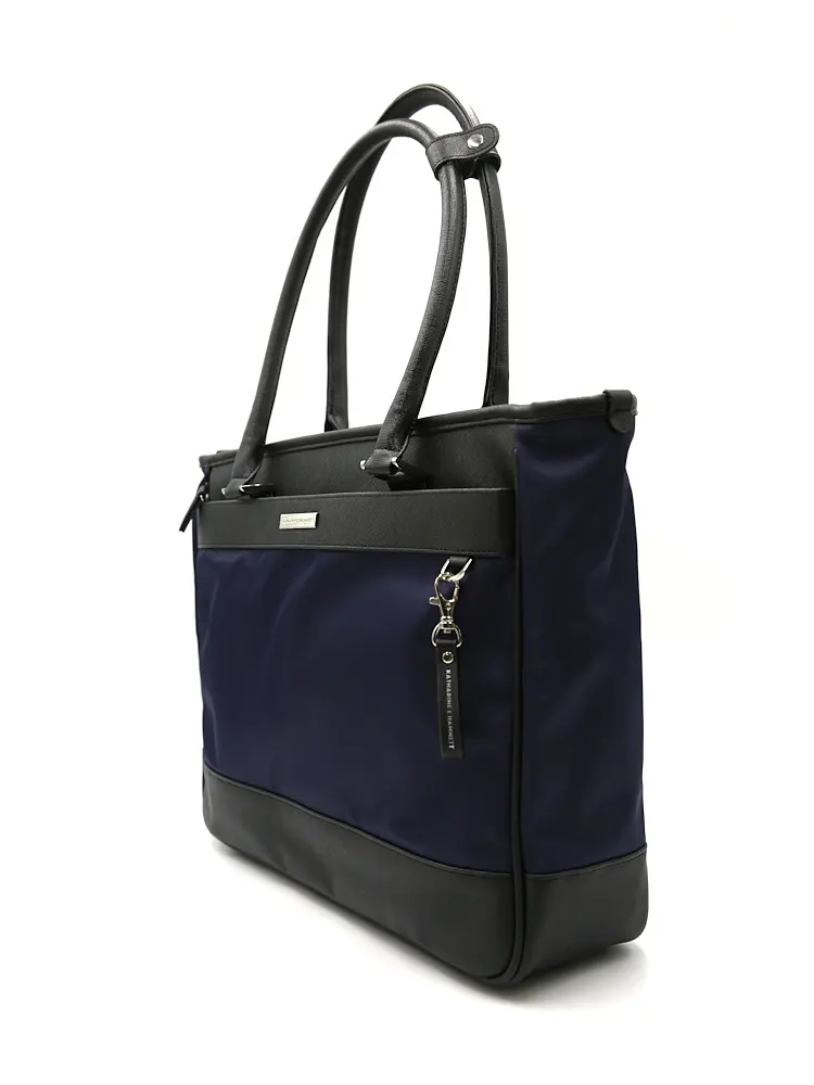 【KATHARINE E HAMNETT-キャサリン・イー・ハムネット-】トートバック ナイロン×サフィアーノ調 多収納 無地 通年(ネイビー)