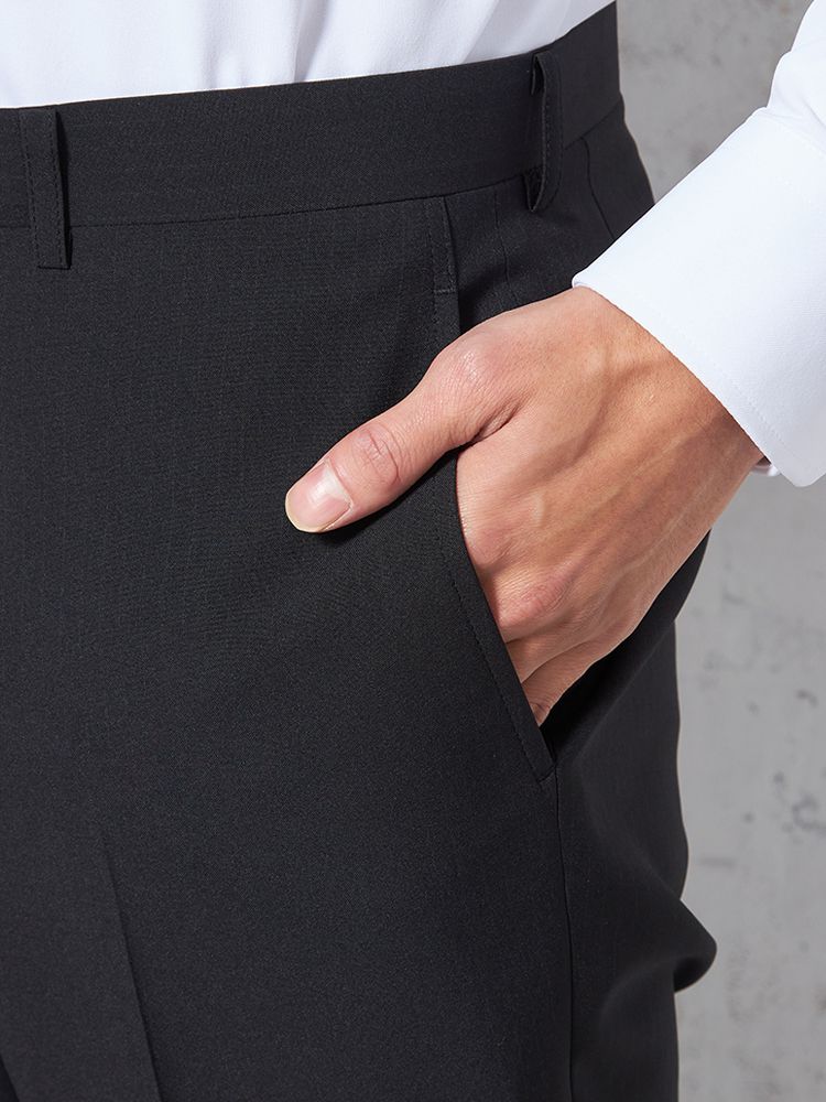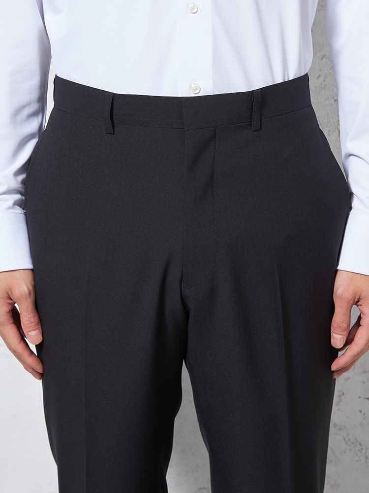 【ウォッシャブル】パンツスラックスノータック防しわリッケンバッカーブラック
