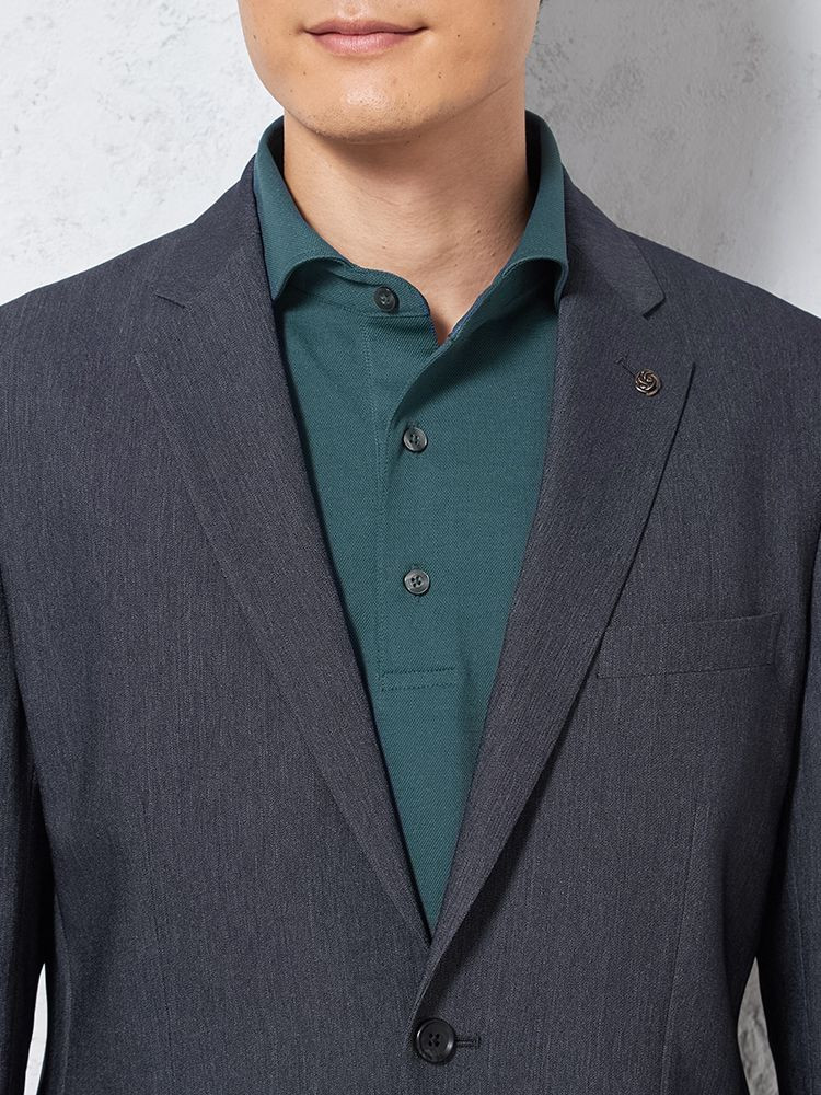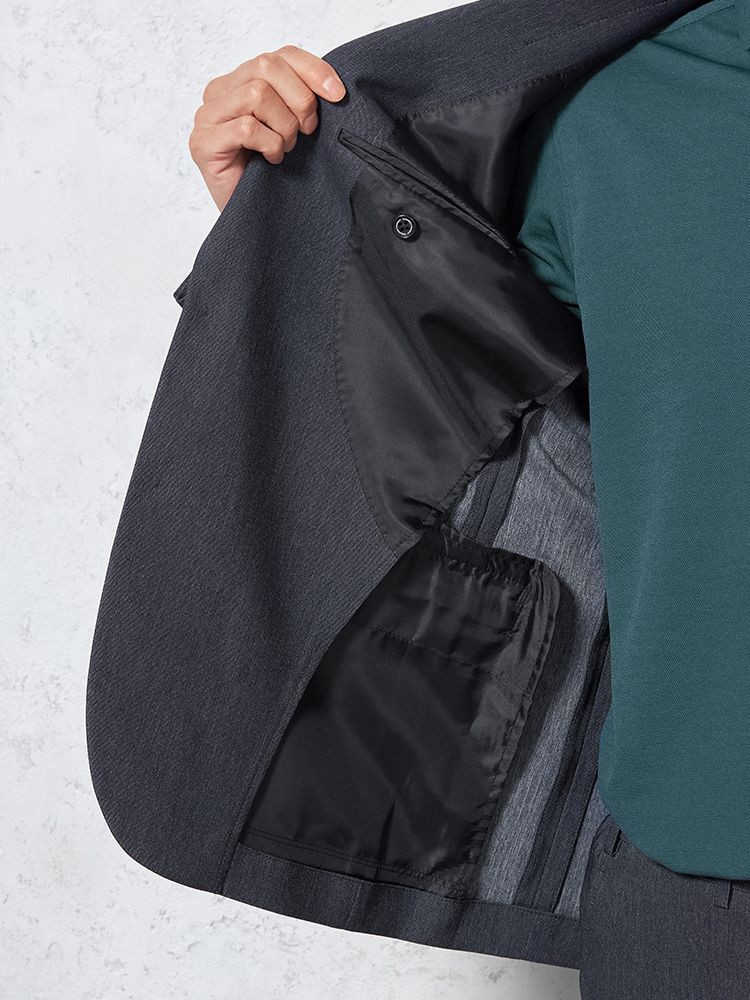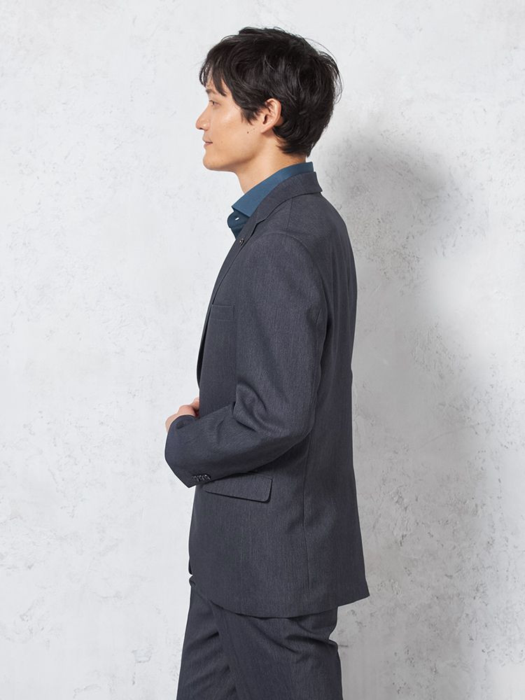 ノッチドラペル×2つボタンのすっきりとした印象も魅力。