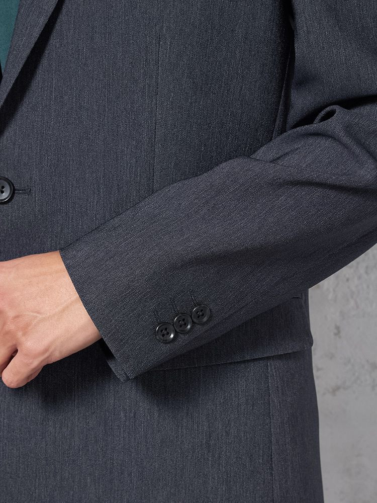 2つボタンのデザインで、クラシックなスタイルを演出。落ち着きと品のあるアイテムです。