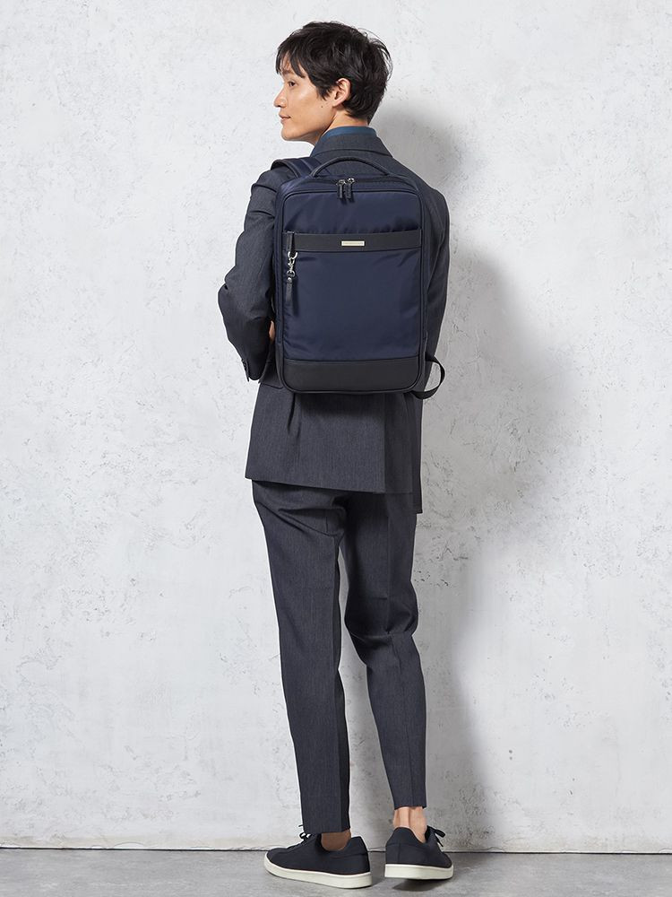 リサイクルポリエステルを混紡した合繊素材は、高いストレッチ性もあり快適な着心地。