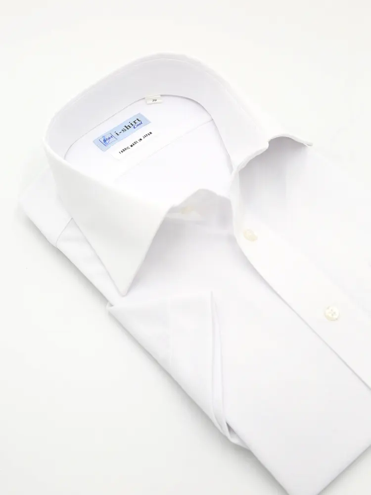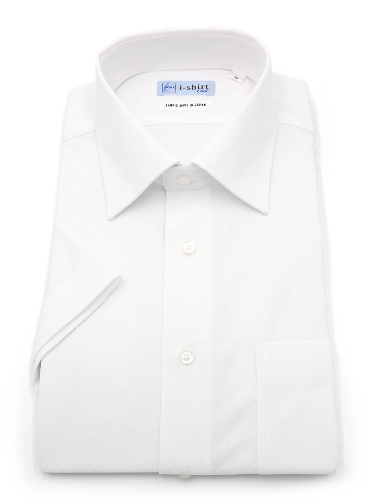 【完全ノーアイロン】半袖 アイシャツ セミワイド【アイスライブ生地使用】吸湿冷感 ブライトスクエア i-shirt ワイシャツ 春夏(ホワイト)