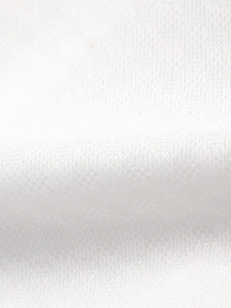 こだわりの日本製生地はソフトなポリエステルニットで、スポーツウェア等にも使われる高機能素材。体の動きに合わせて生地が伸び縮みする高いストレッチ性が特徴で、動作時の負荷が少なく着用ストレスも軽減します。