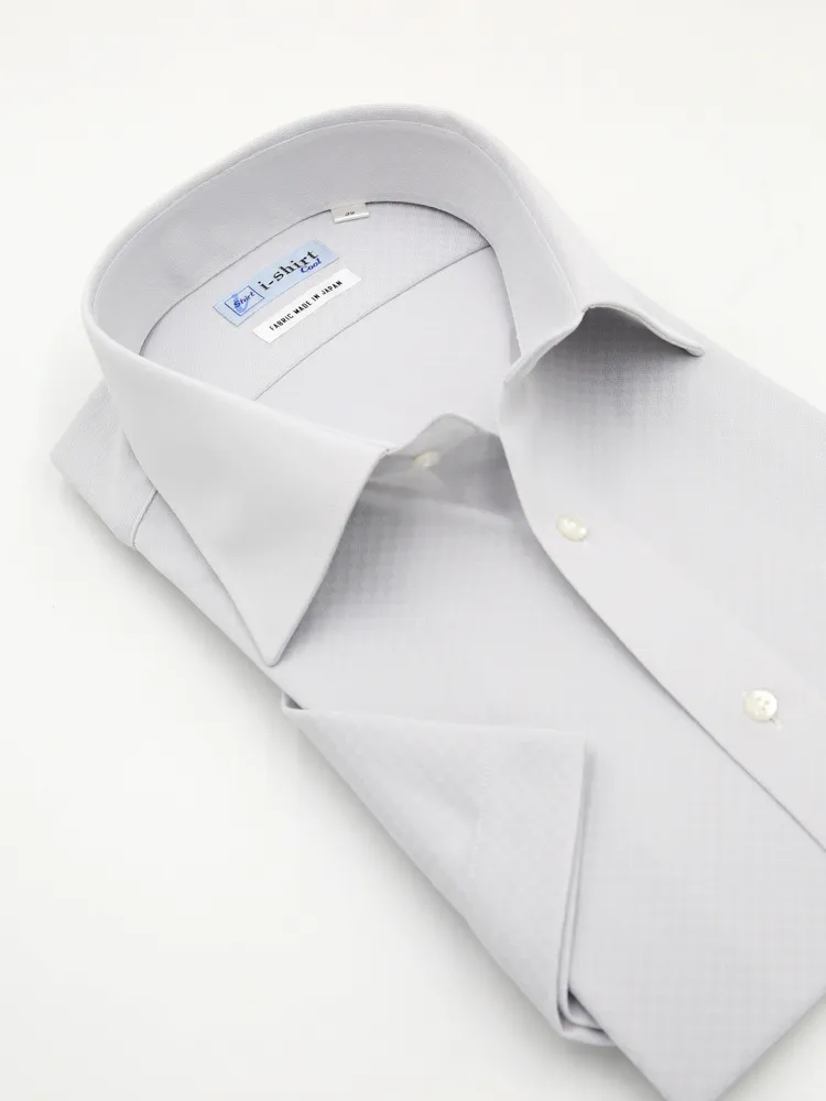 【完全ノーアイロン】半袖アイシャツセミワイド【アイスライブ生地使用】吸湿冷感ブライトスクエアi-shirtワイシャツ春夏