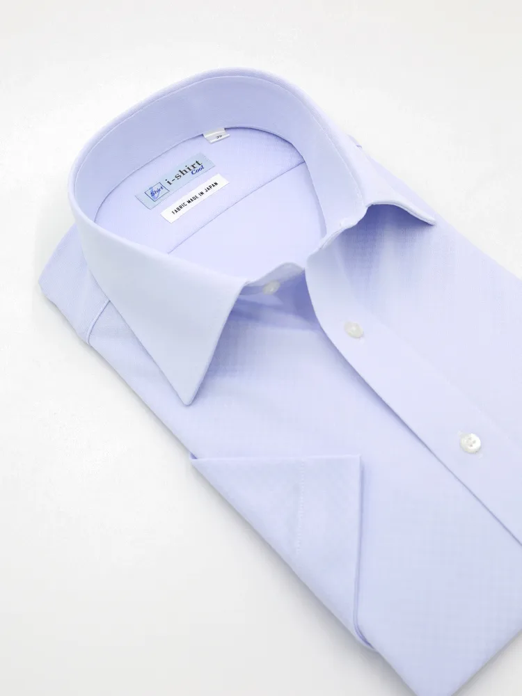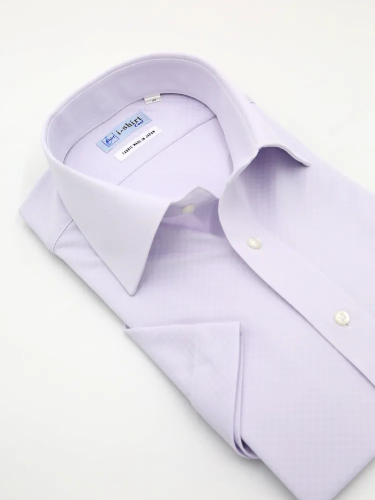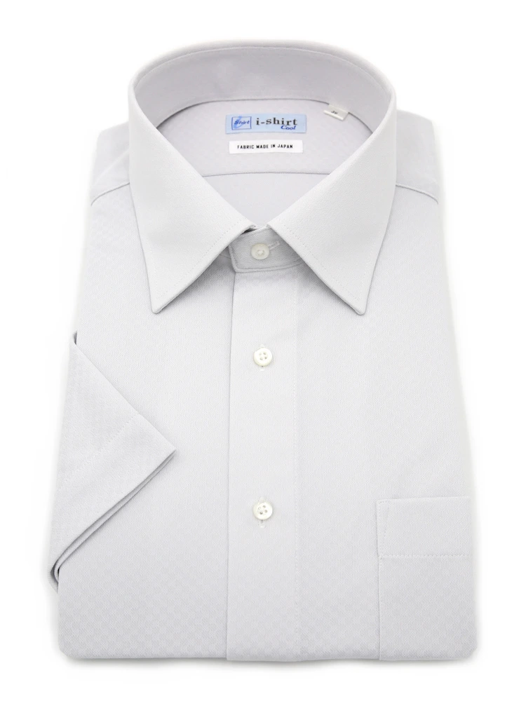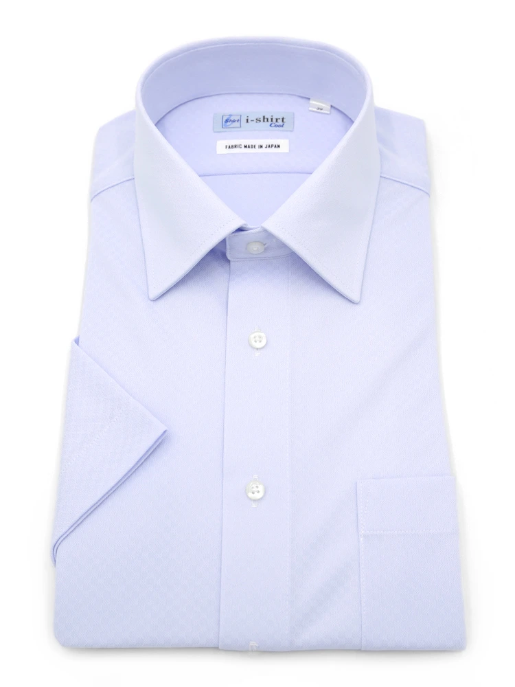 【完全ノーアイロン】半袖アイシャツセミワイド【バイオセンサークール生地使用】吸湿冷感高通気織柄無地ワイシャツi-shirt春夏