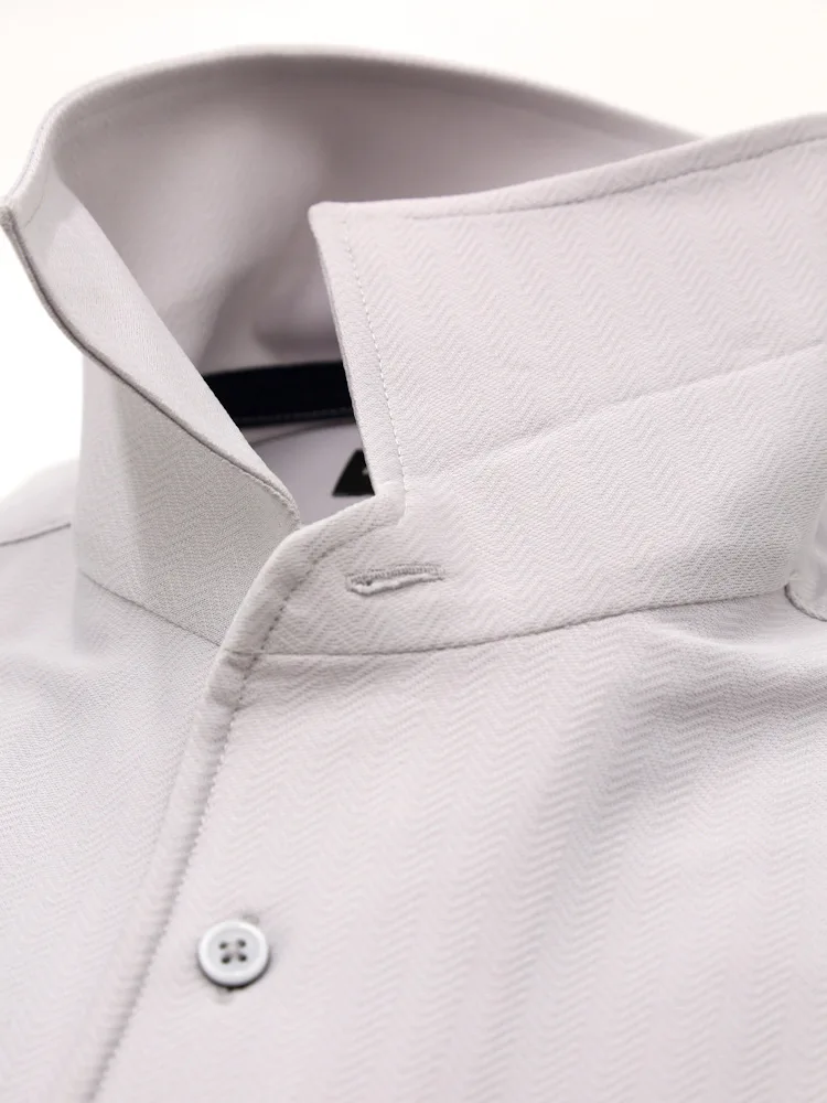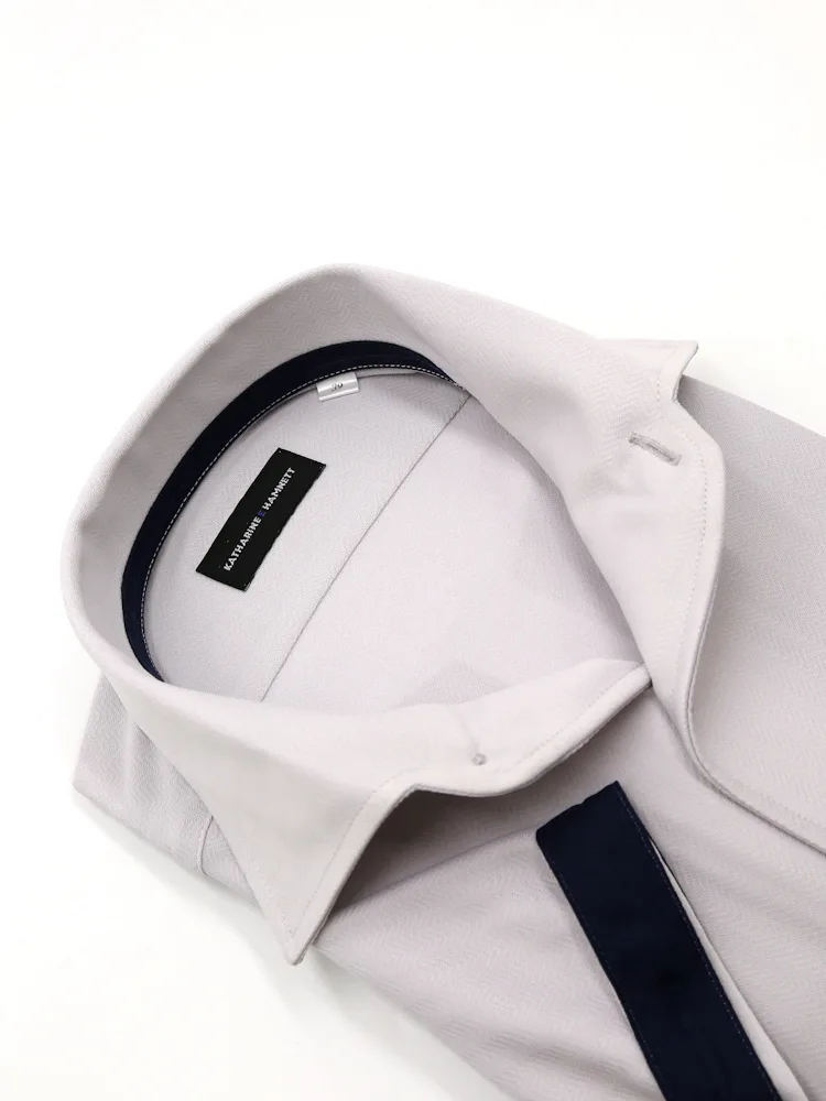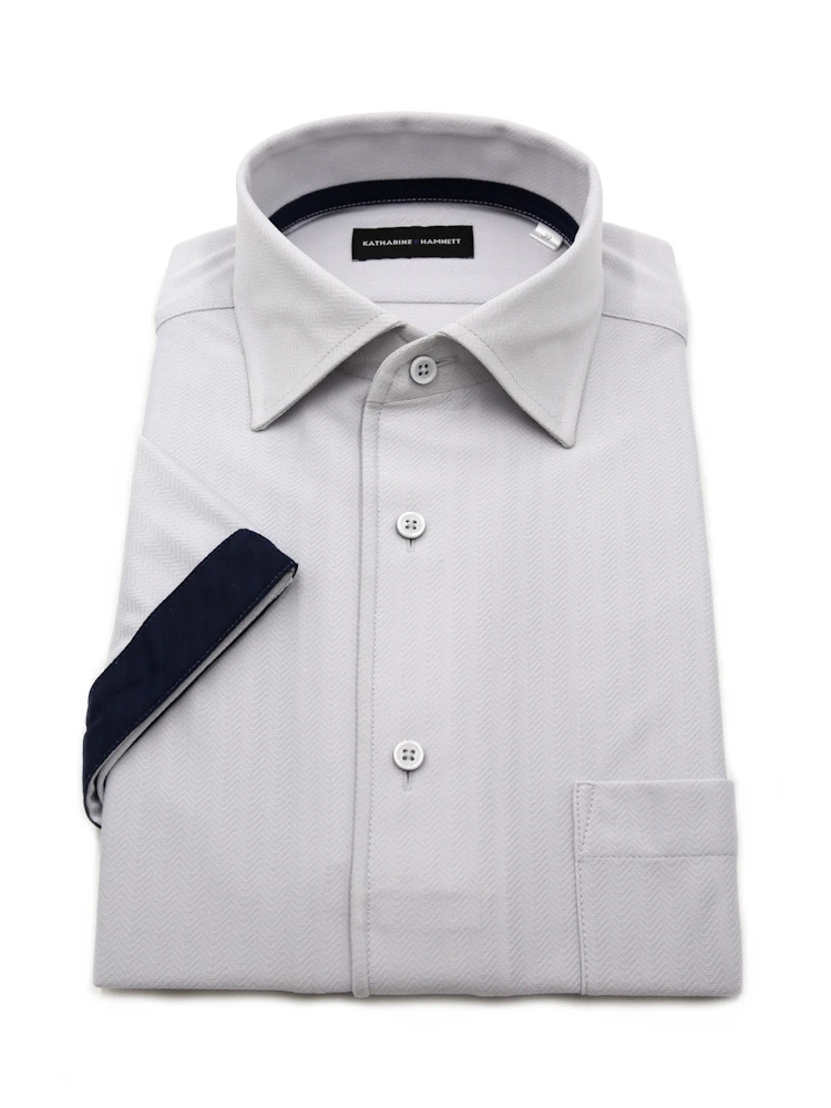 【KATHARINE E HAMNETT-キャサリン・イー・ハムネット-】半袖 ワイシャツ ワンピースカラー セミワイド 360°ストレッチ 吸水速乾 へリンボン 通年(C.グレー)