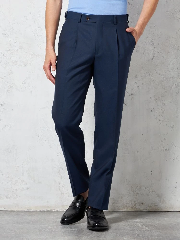 【ウール100%】パンツ ワンタック イタリア マルラーネ社製生地 ネイビー 無地 RUCKEN BACCHAR