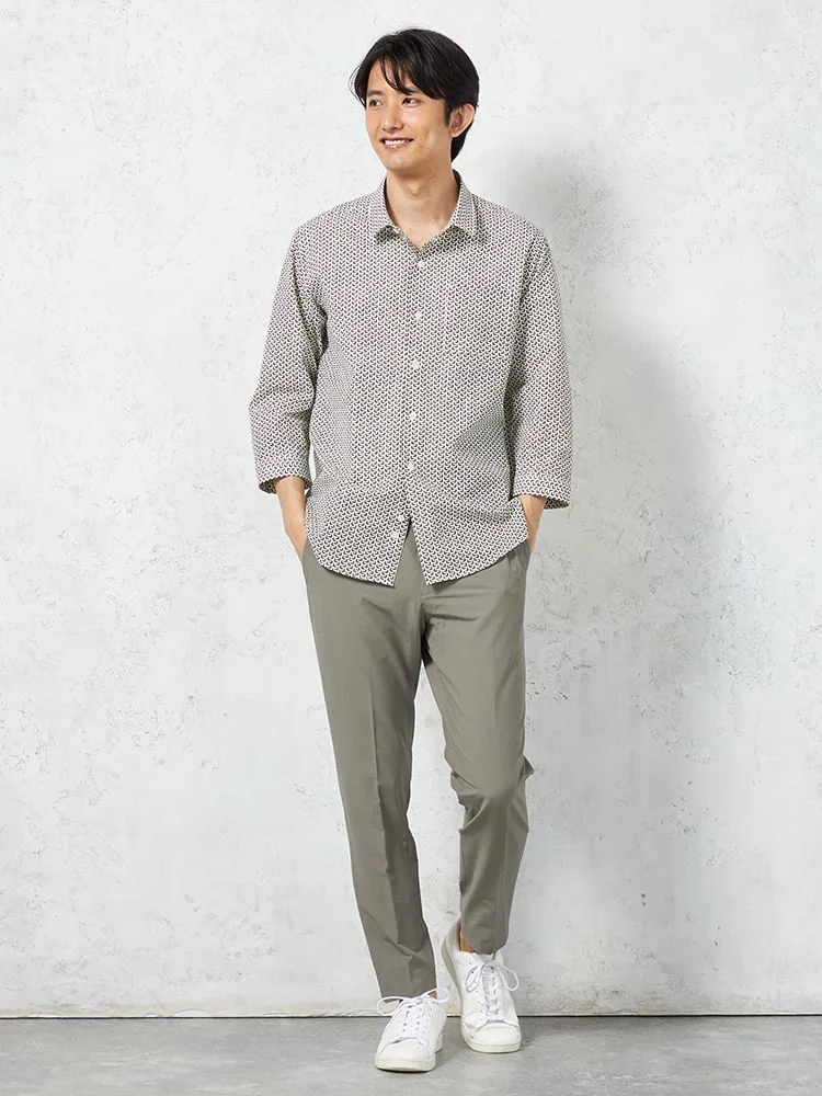 【RUCKENBACCHAR】7分袖レギュラーカラープリントシャツミニ小紋柄カジュアルインナー春夏