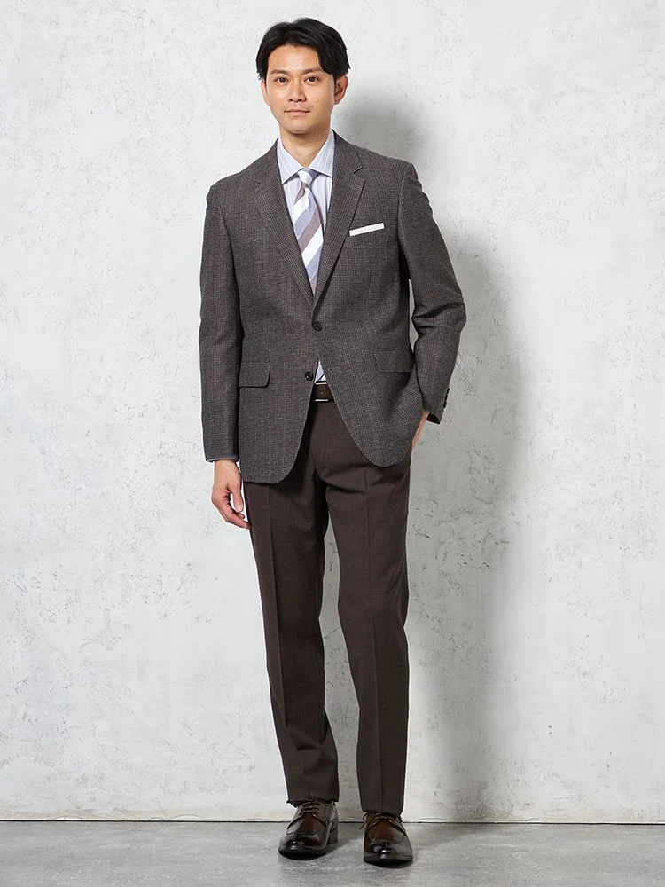 高い通気性と速乾性がこれからの季節にぴったり、メッシュのような絡み織りで仕上げたブラウンカラージャケットです。