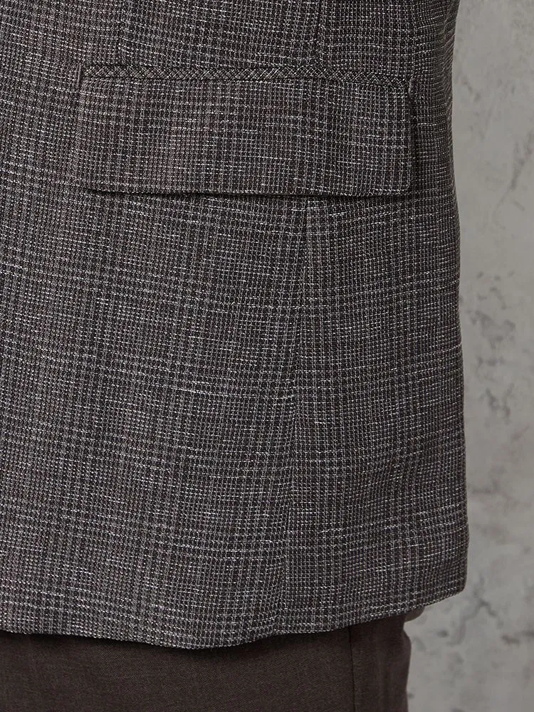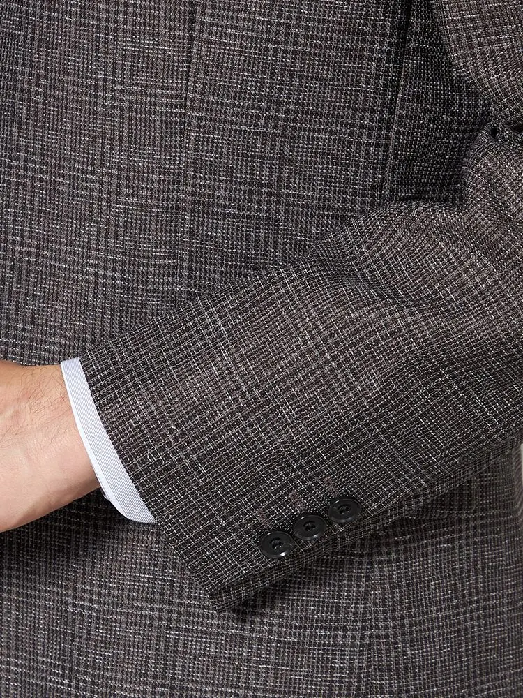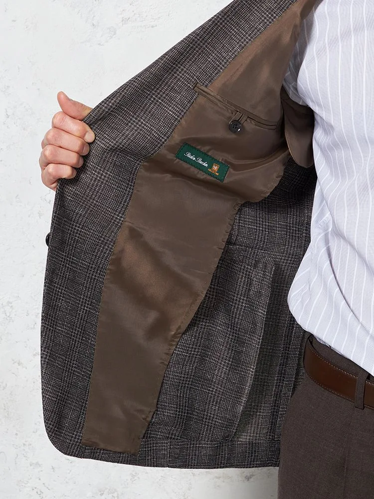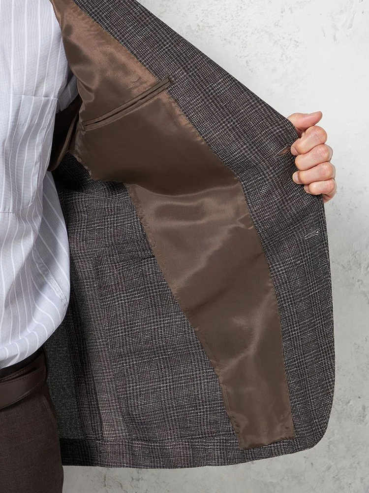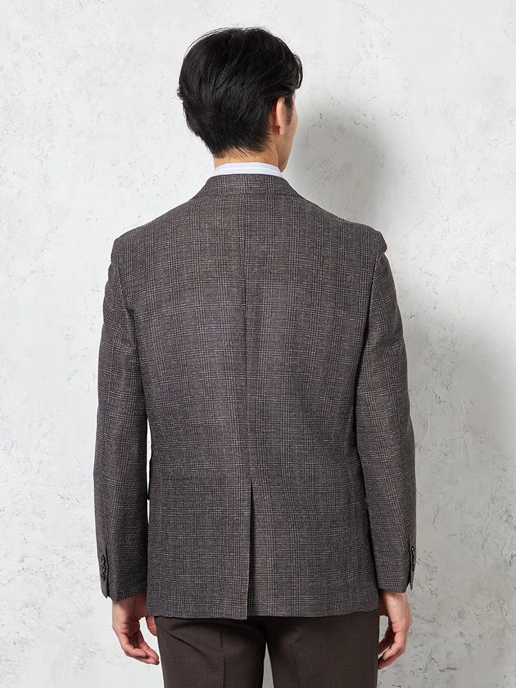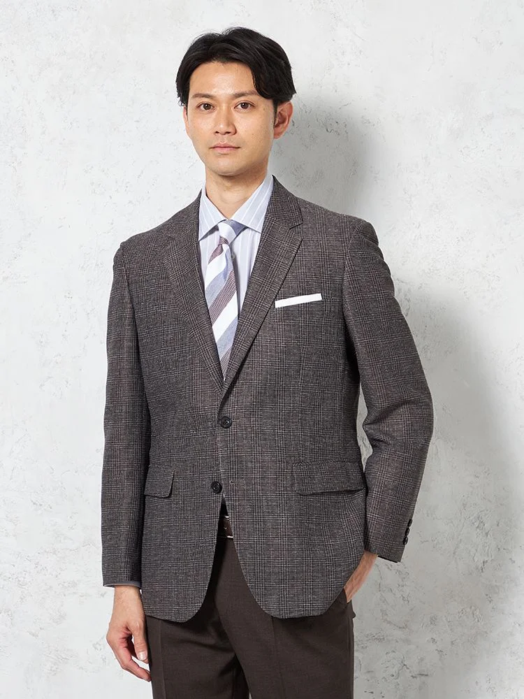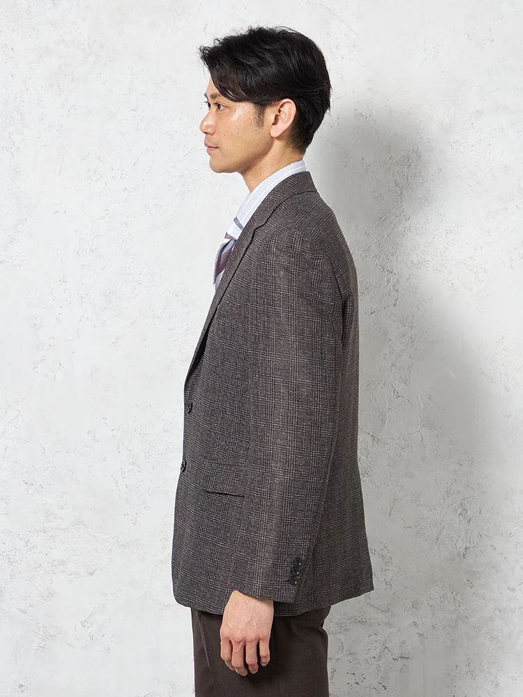 【超軽量】ジャケット 2つボタン リネンタッチ 高通気 ブラウン チェック RUCKEN BACCHAR 春夏