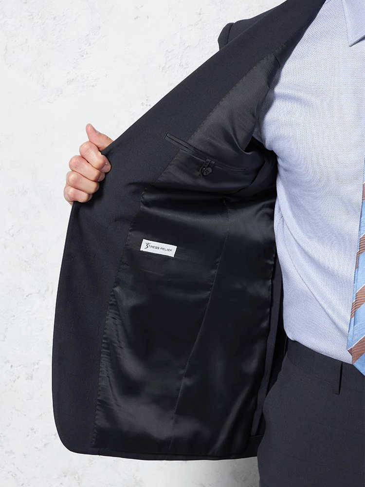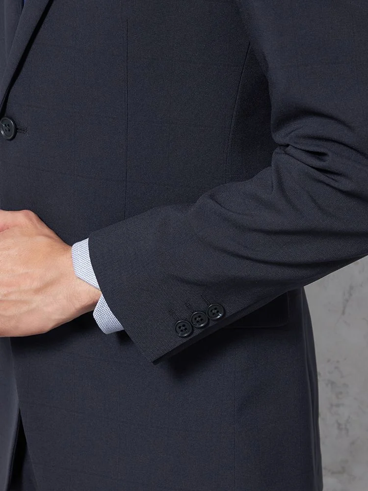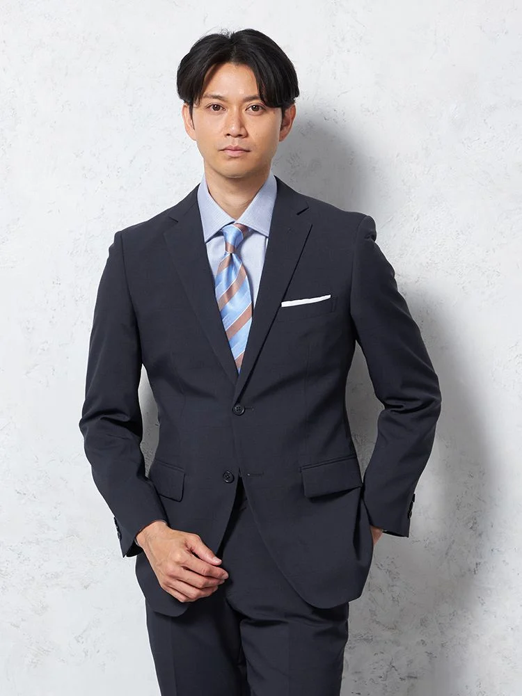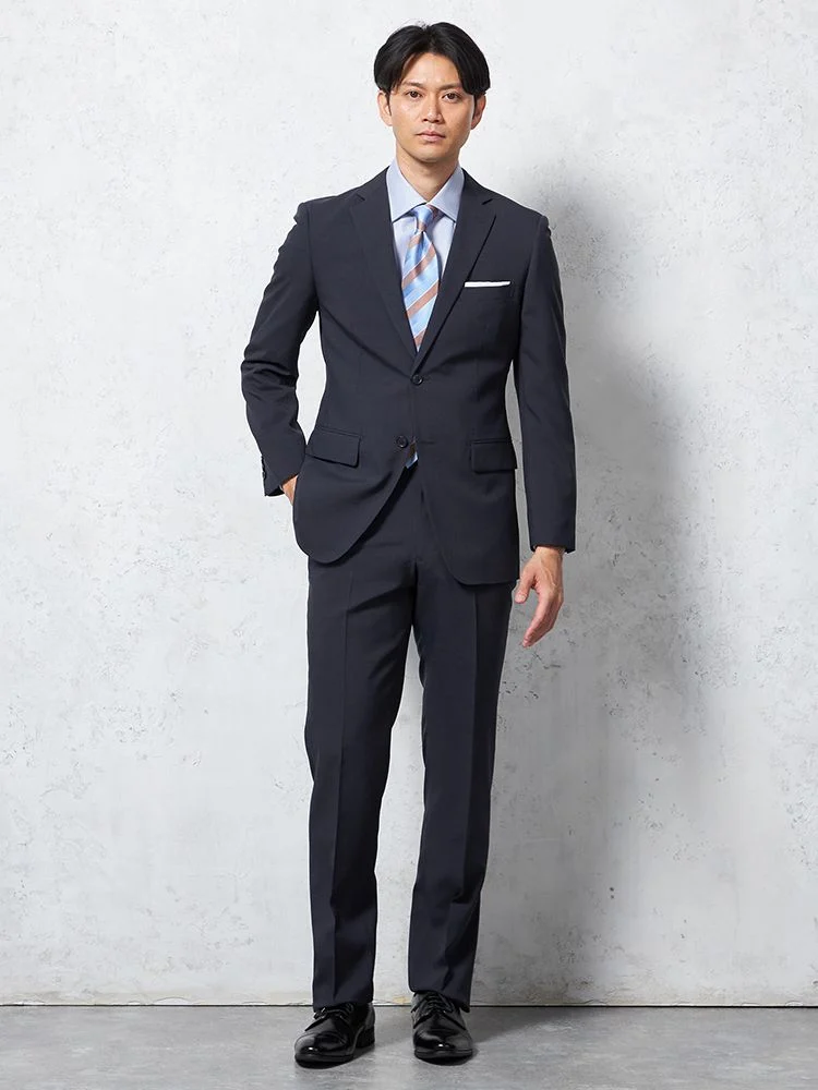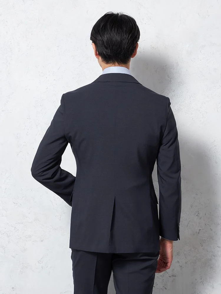 【即納】スーツ 2つボタン【WEB限定】4WAYストレッチ シャドウチェック ネイビー