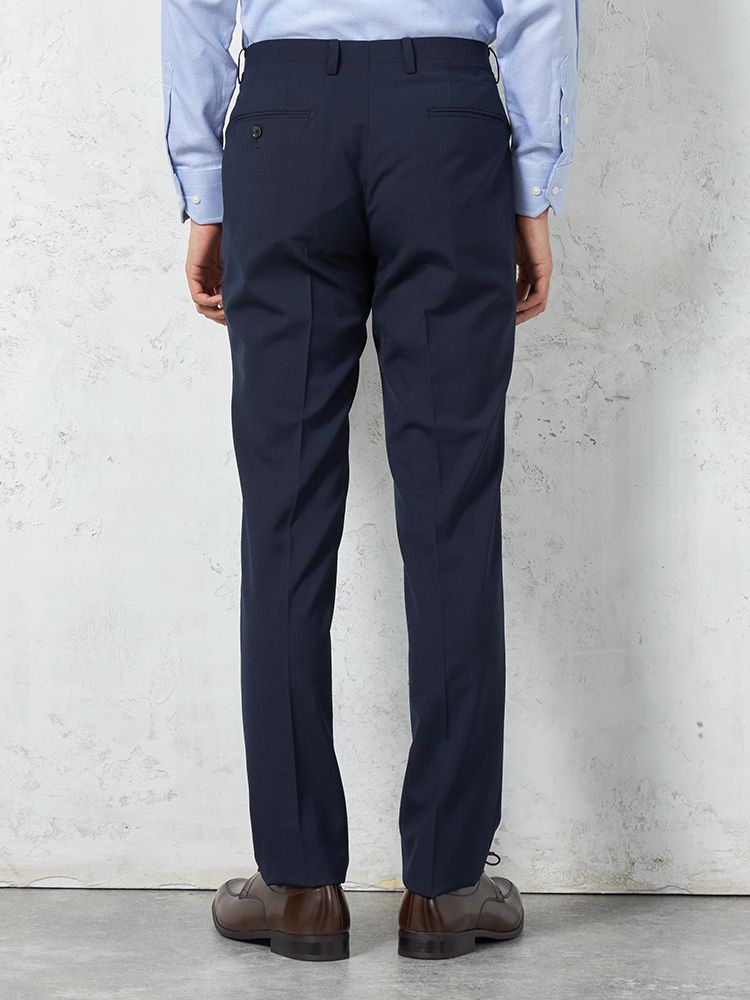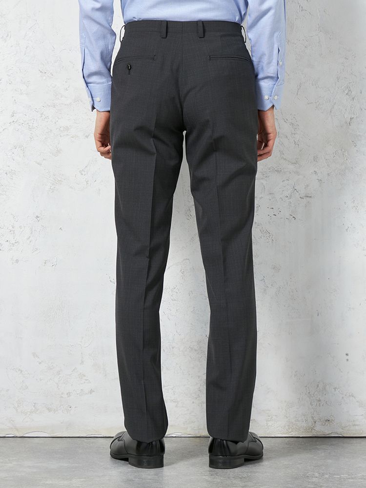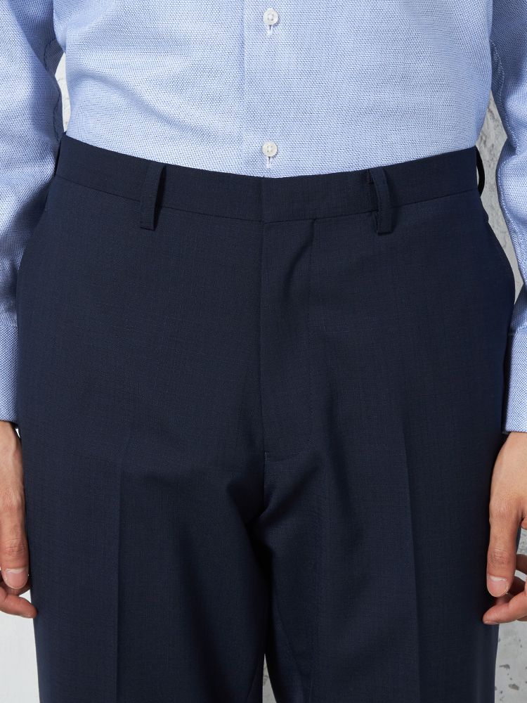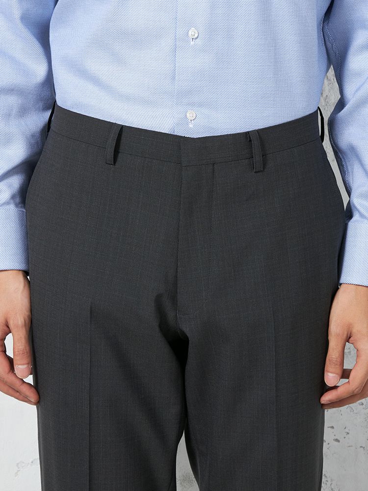 パンツの腰回りに生地の折り込みがなく、スッキリとしたシルエットを実現します。シンプルで洗練された印象を与え、すっきりとした着こなしが可能です。