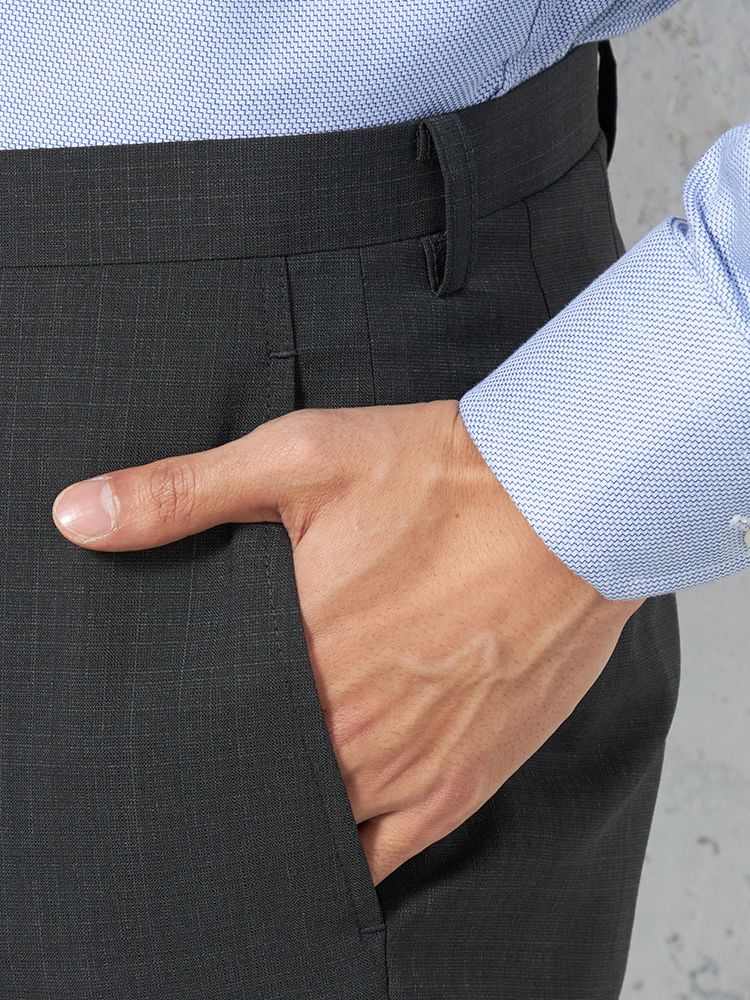 ポリエステルにウールを織り交ぜた素材はストレッチ性も抜群。