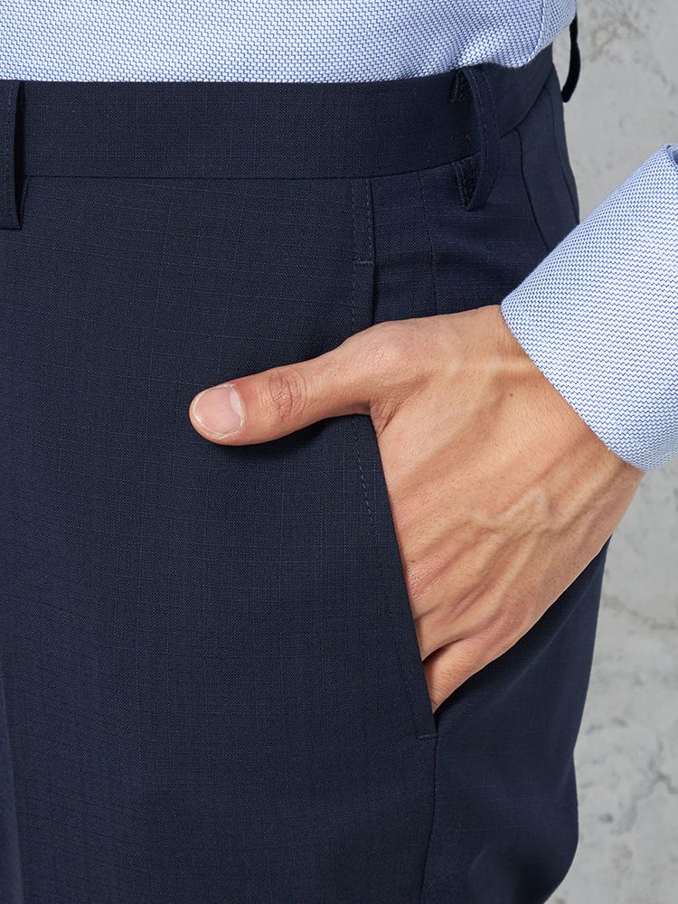 織りで爽やかな格子柄を表現した、サラリとしたタッチの素材を用いたパンツスラックスです。