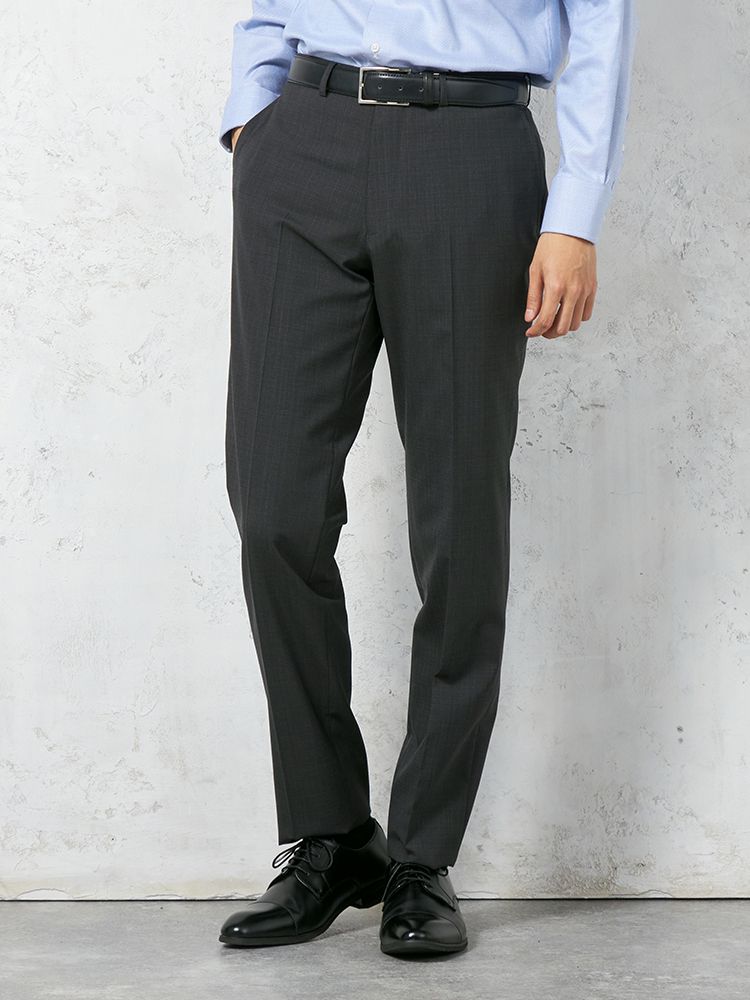 【ウォッシャブル】パンツ ノータック ツイル柄 チェック nero【スリムデザイン】(C.グレー)