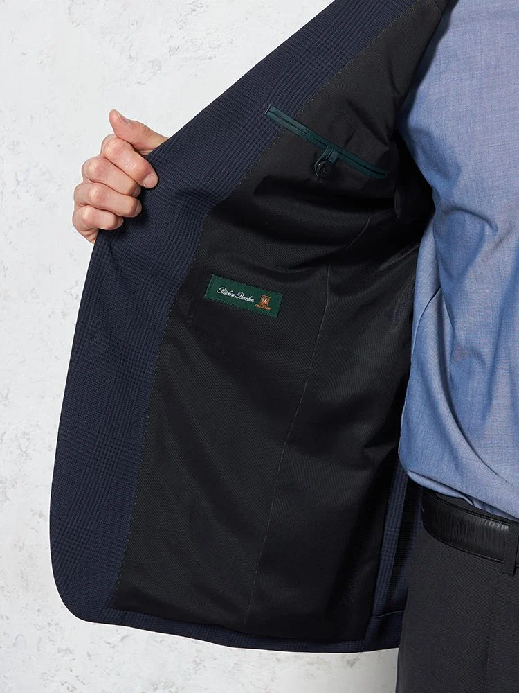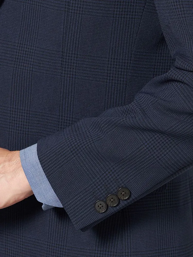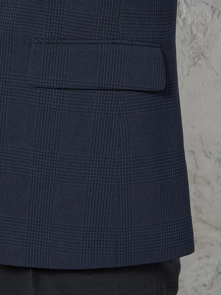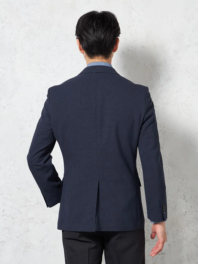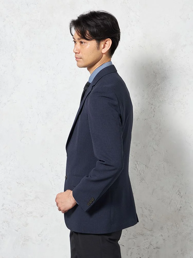 【ウォッシャブル】ジャケット 2つボタン ストレッチ ネイビー チェック リッケンバッカー