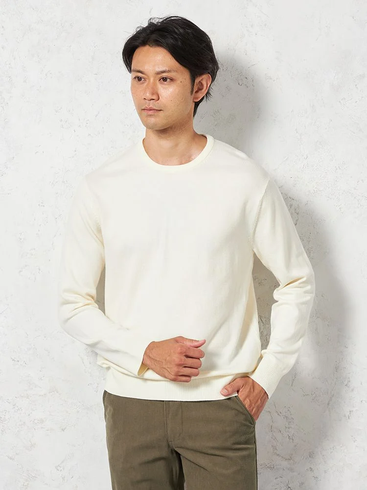 【吸湿発熱】長袖ニット Gヒート クルーネック カジュアルインナー 無地 リッケンバッカー 秋冬(オフホワイト)