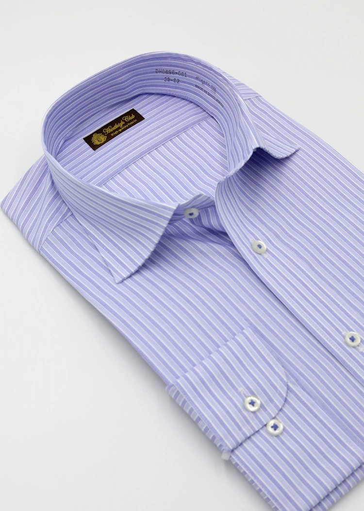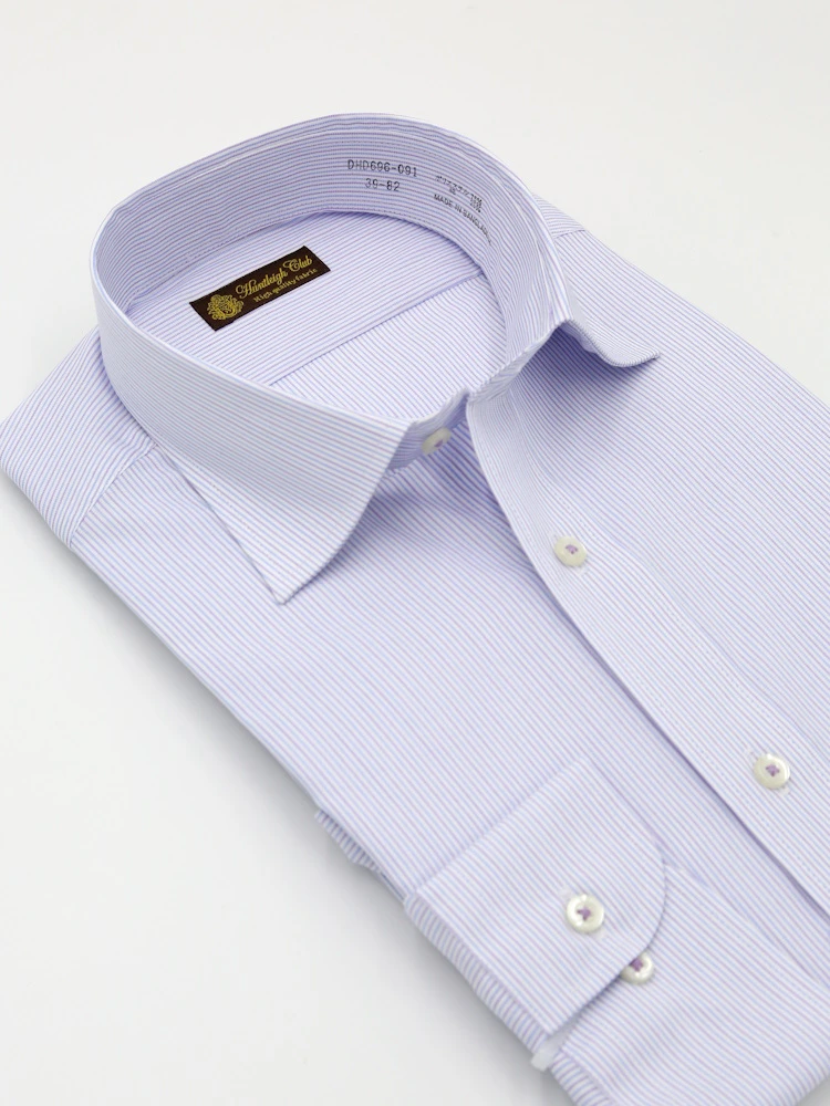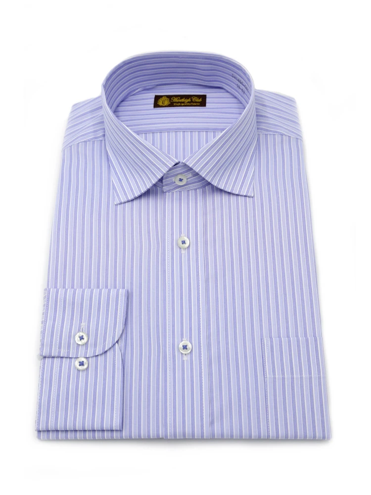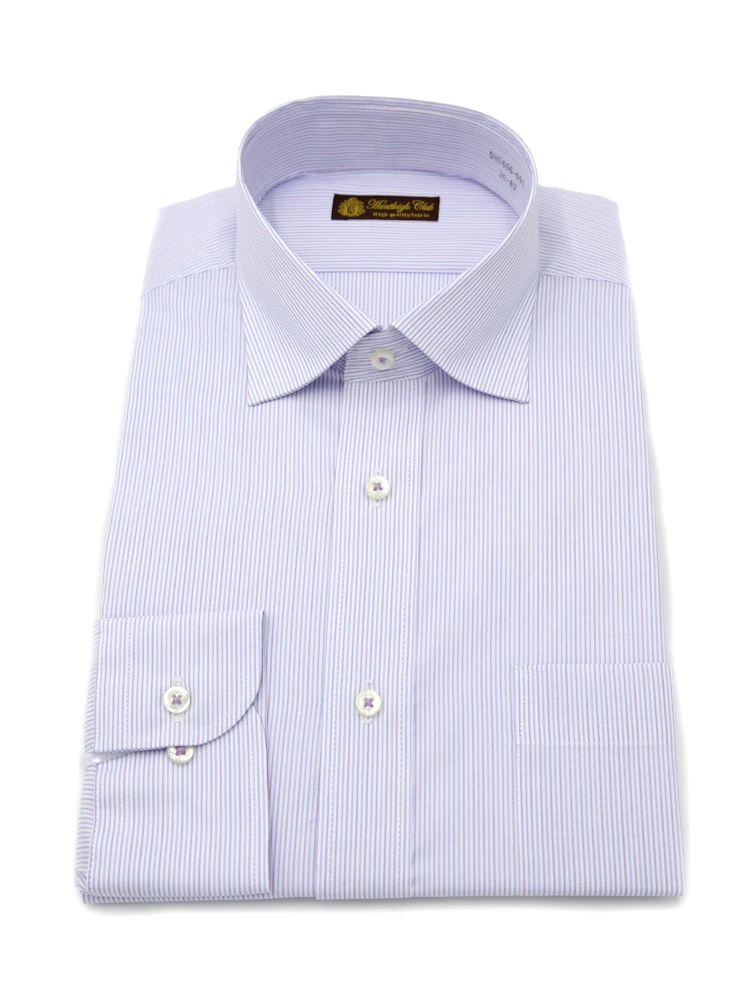 【形態安定】長袖 ワイシャツ セミワイド 色柄 ハントレークラブ 通年(ラベンダー)