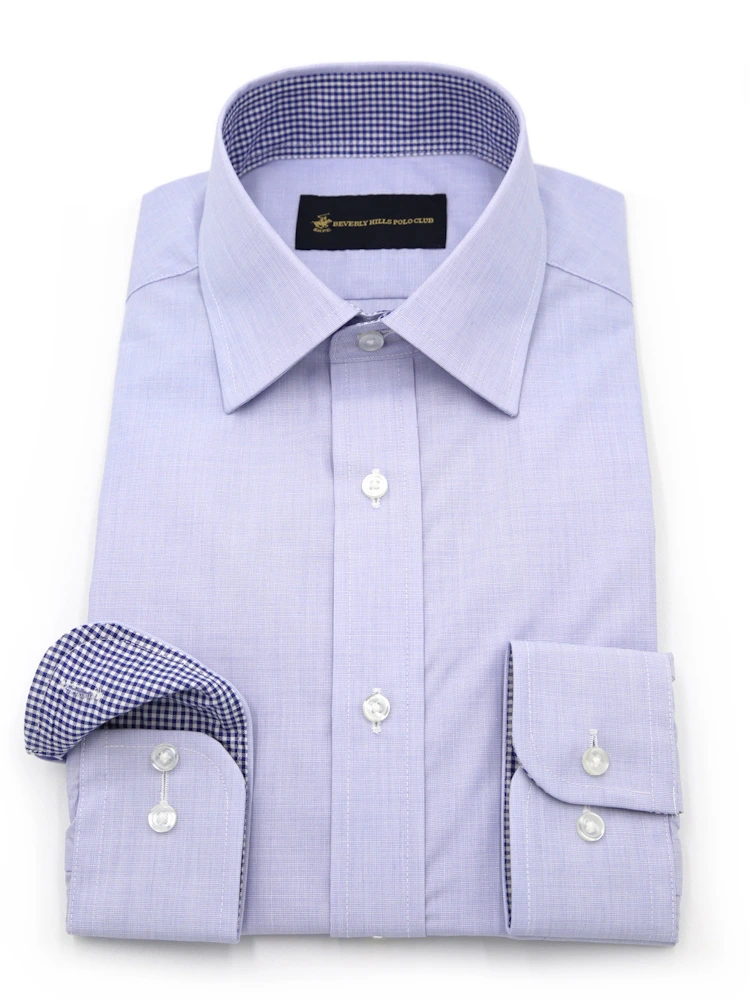 【形態安定】長袖ワイシャツセミワイド別布ブルー織柄無地ビバリーヒルズポロクラブ通年