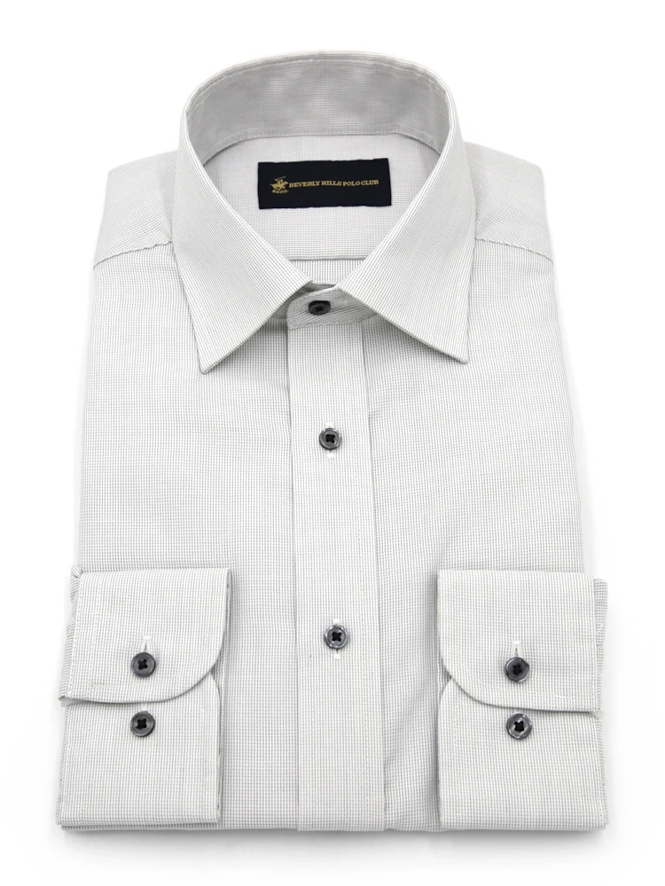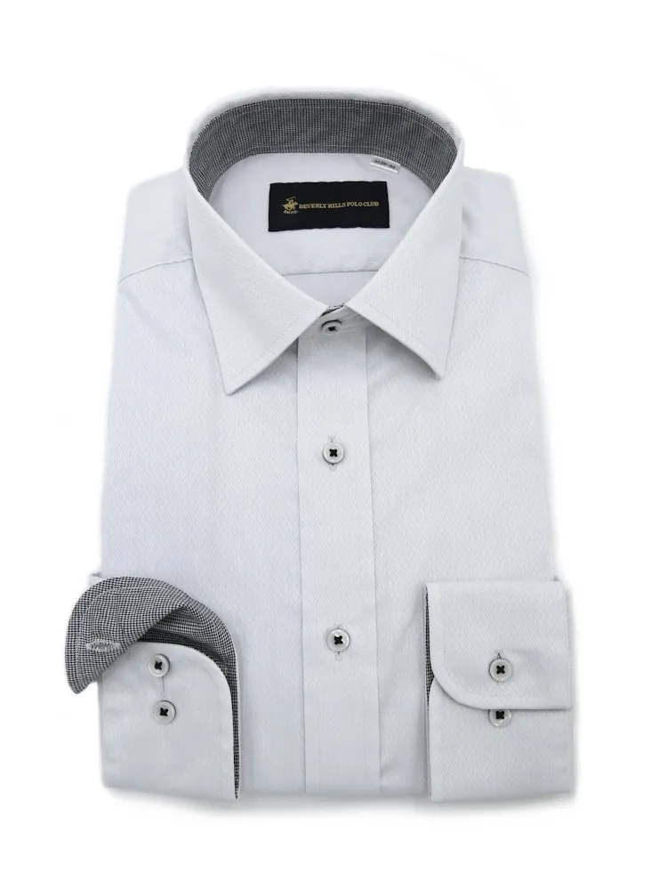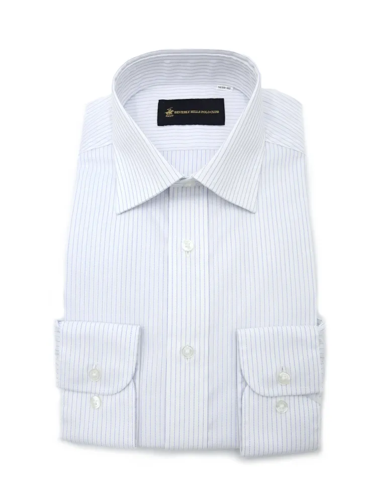【形態安定】長袖ワイシャツセミワイド白ドビー織柄無地ビバリーヒルズポロクラブ通年