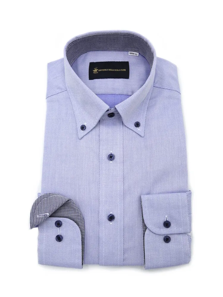 【形態安定】長袖ワイシャツ ボタンダウン 別布 S.ブルー 織柄無地 ビバリーヒルズポロクラブ 通年