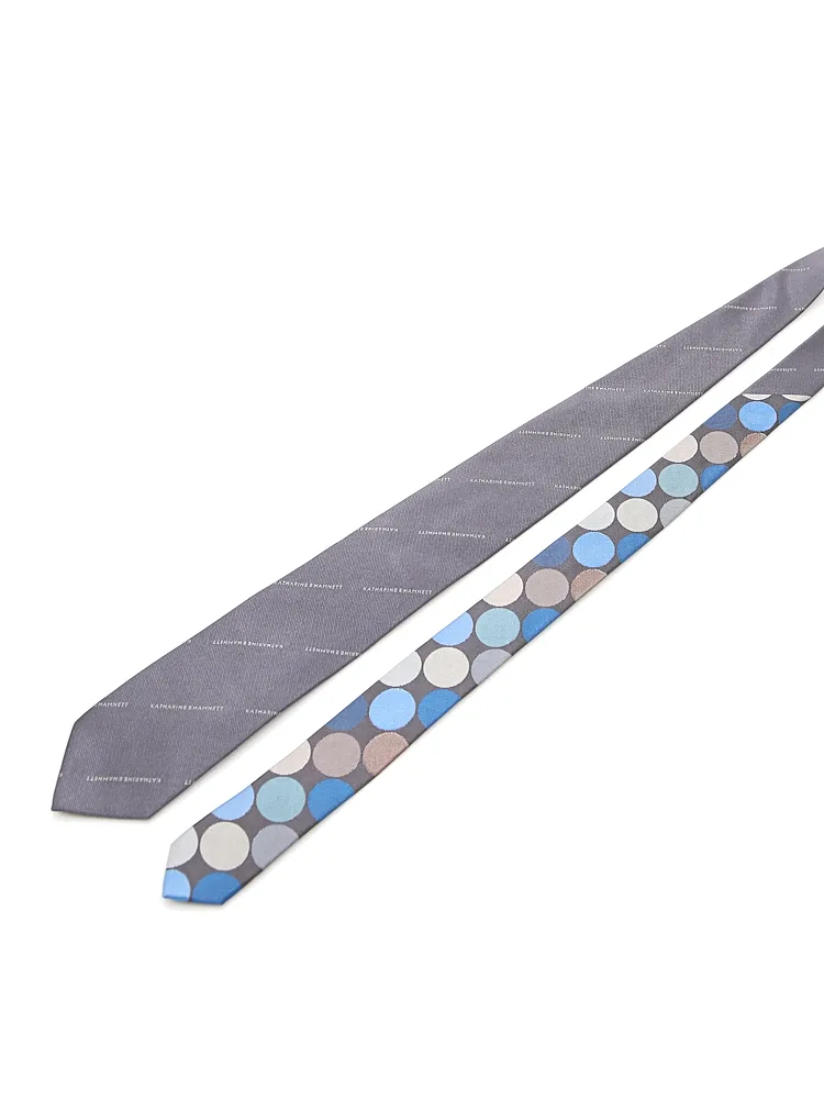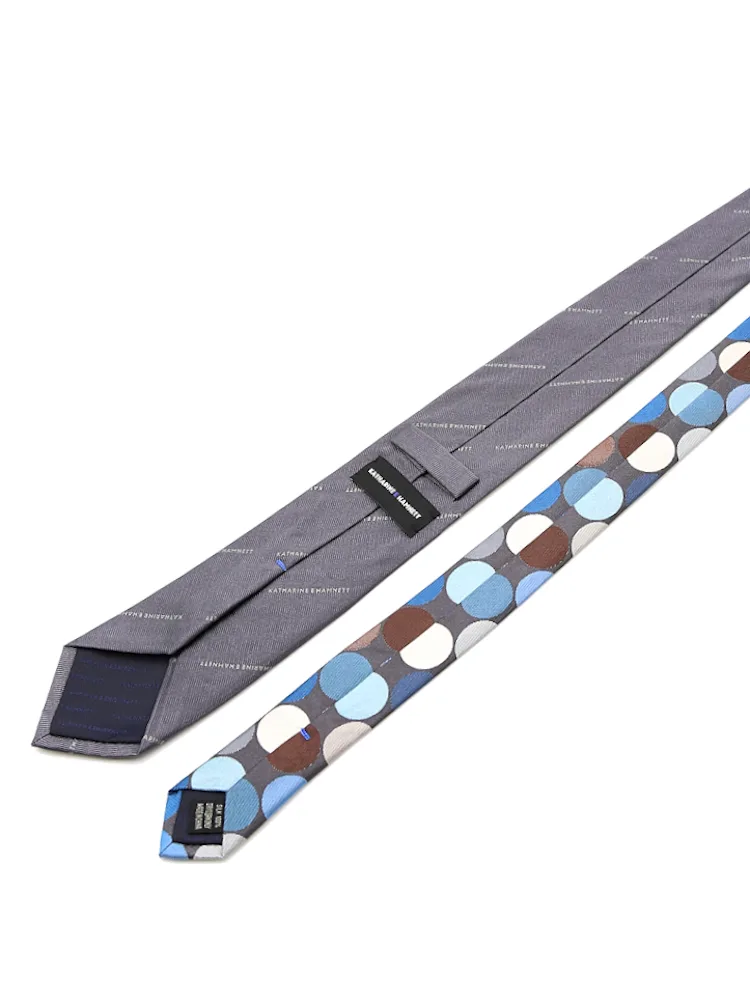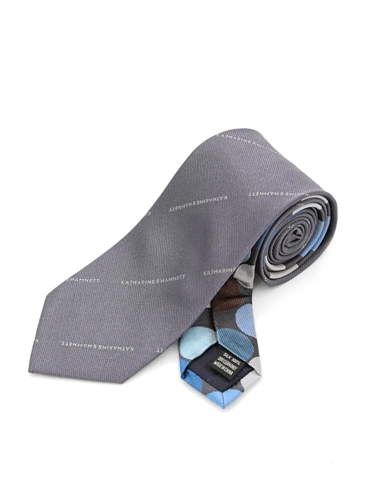 【KATHARINE E HAMNETT-キャサリン・イー・ハムネット-】のシルク100%、モダンクレリックネクタイ。