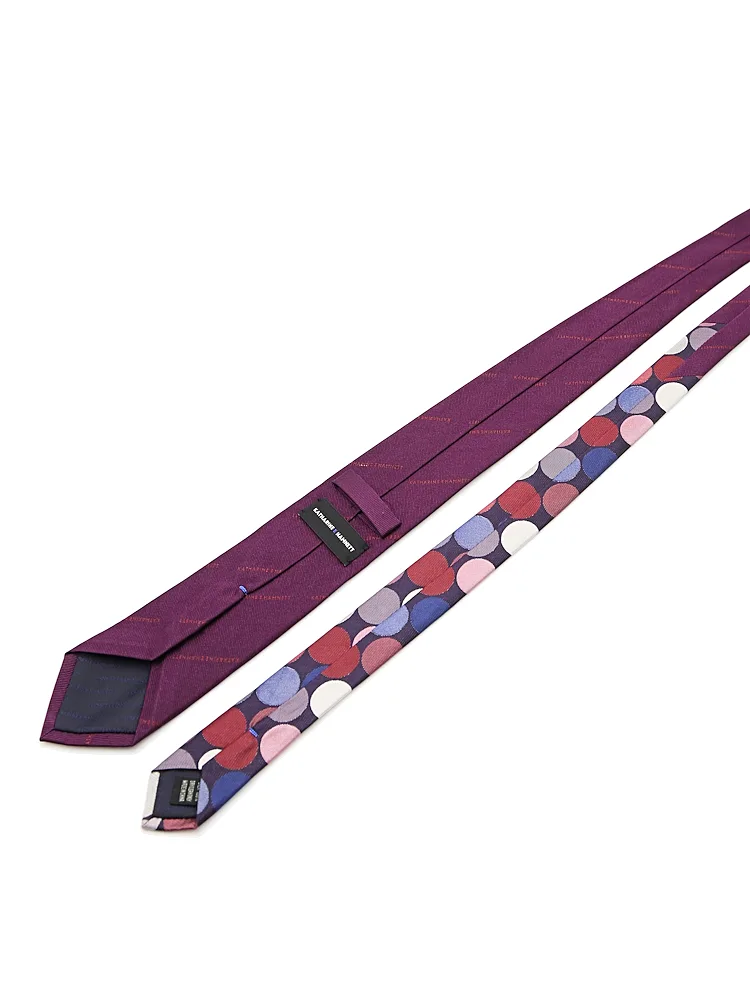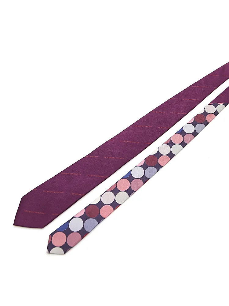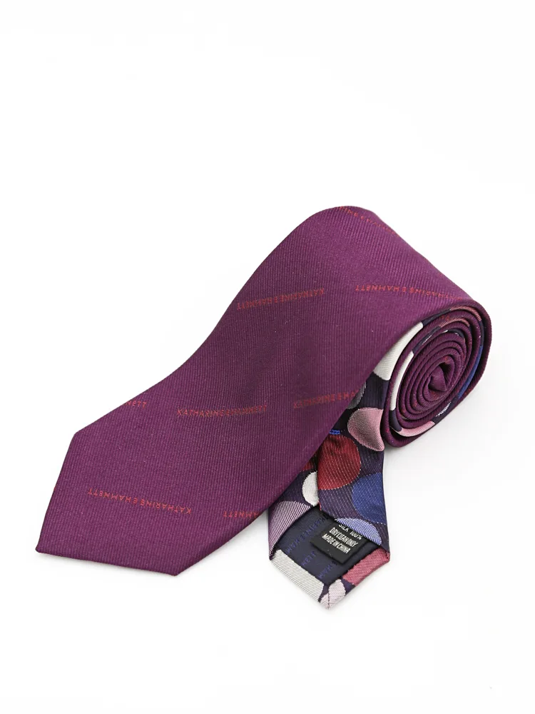 【KATHARINE E HAMNETT-キャサリン・イー・ハムネット-】クレリックネクタイ レギュラー シルク100% ロゴストライプ×ドット 秋冬(ワイン)