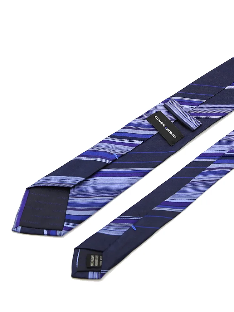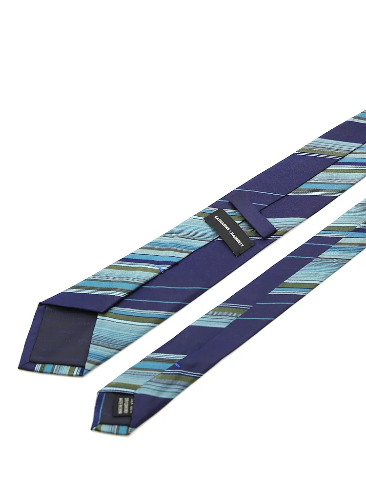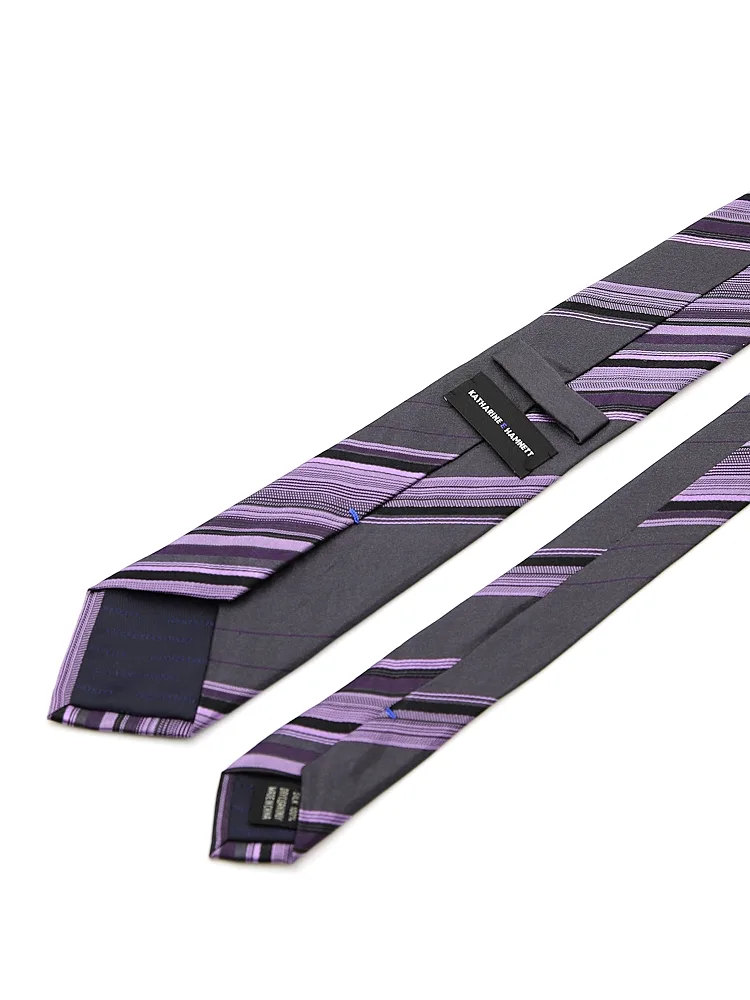 【KATHARINEEHAMNETT-キャサリン・イー・ハムネット-】ネクタイレギュラーシルク100%変形ストライプ秋冬