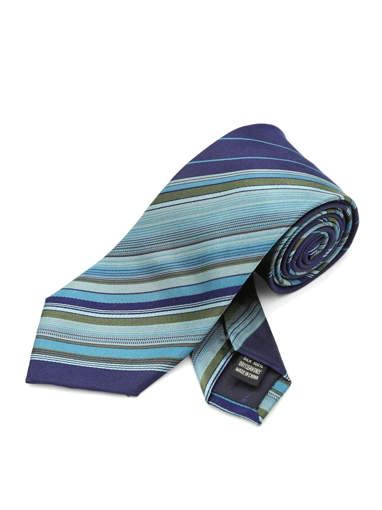 【KATHARINE E HAMNETT-キャサリン・イー・ハムネット-】ネクタイ レギュラー シルク100% ストライプ 秋冬(グリーン)