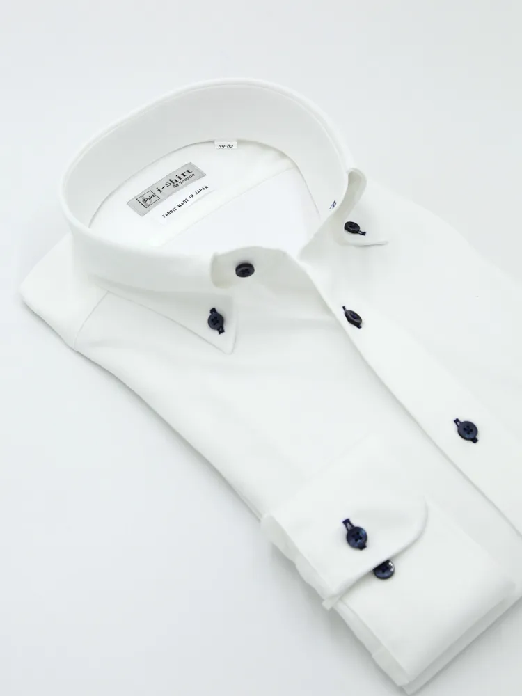 【完全ノーアイロン】長袖アイシャツボタンダウン吸水速乾ストレッチダイヤ織柄無地ワイシャツi-shirt通年
