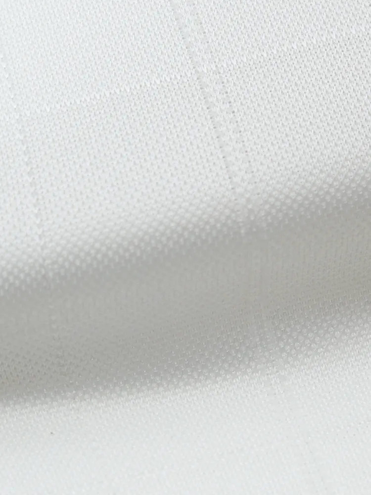 こだわりの日本製生地はソフトなポリエステルニットで、スポーツウェア等にも使われる高機能素材。体の動きに合わせて生地が伸び縮みする高いストレッチ性が特徴で、動作時の負荷が少なく着用ストレスも軽減します。