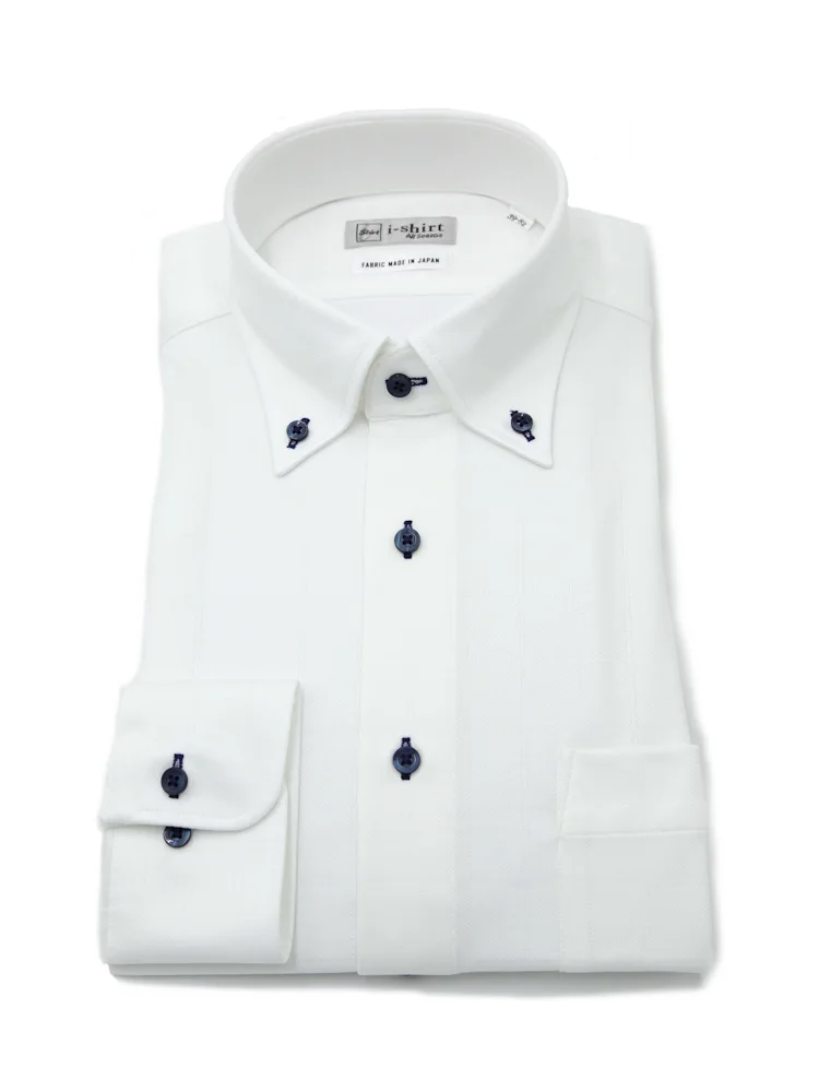 【形態安定】アイシャツ長袖ワイシャツボタンダウン織柄無地i-shirt通年