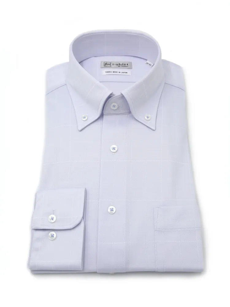 【即納】WEB限定【完全ノーアイロン】長袖アイシャツボタンダウンストレッチロンビック柄i-shirt通年