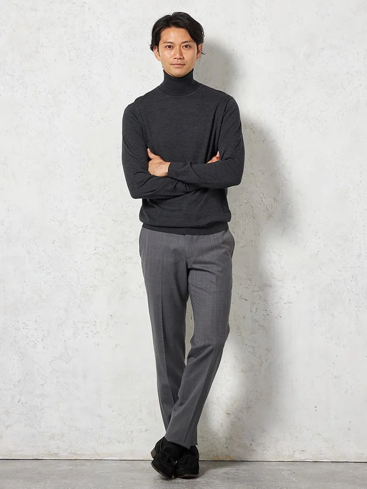 【ウール100%】梳毛 タートルネックセーター カジュアルインナー 無地 リッケンバッカーブラック 秋冬(C.グレー)