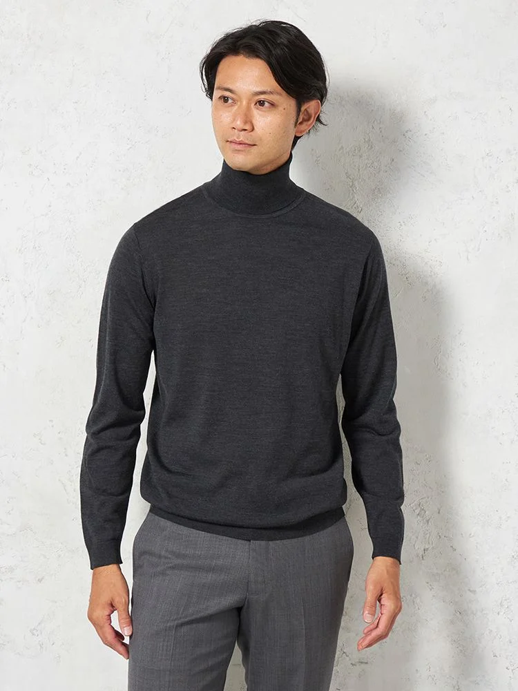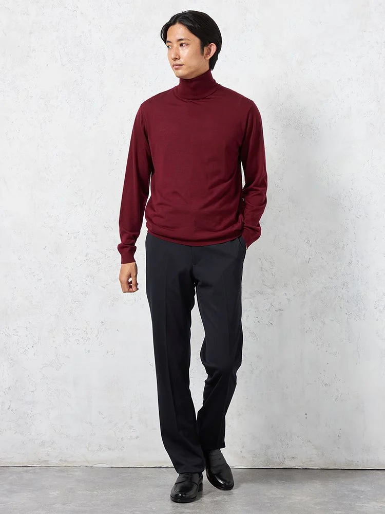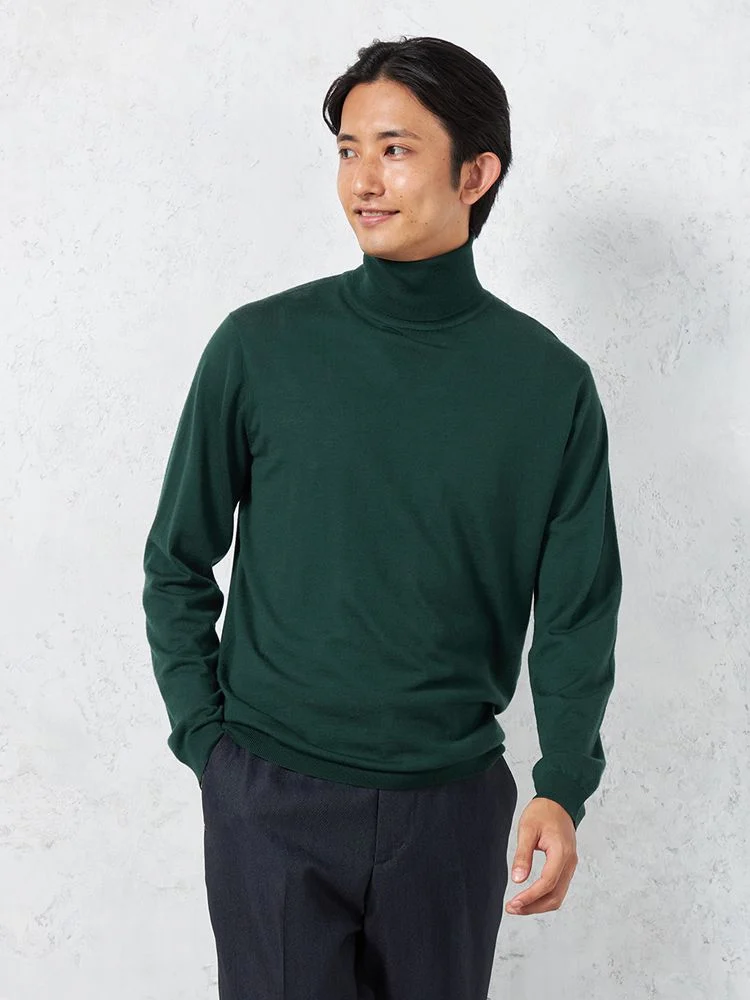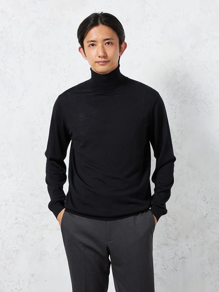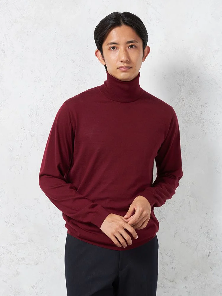美しい光沢感となめらかな肌ざわりが魅力のメリノウールを使用した長袖タートルネックです。