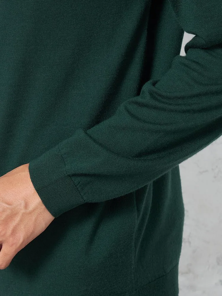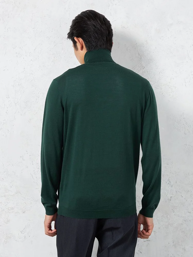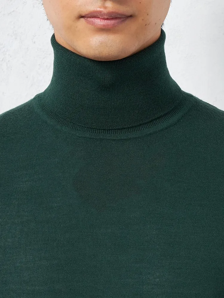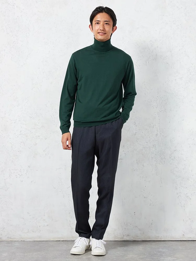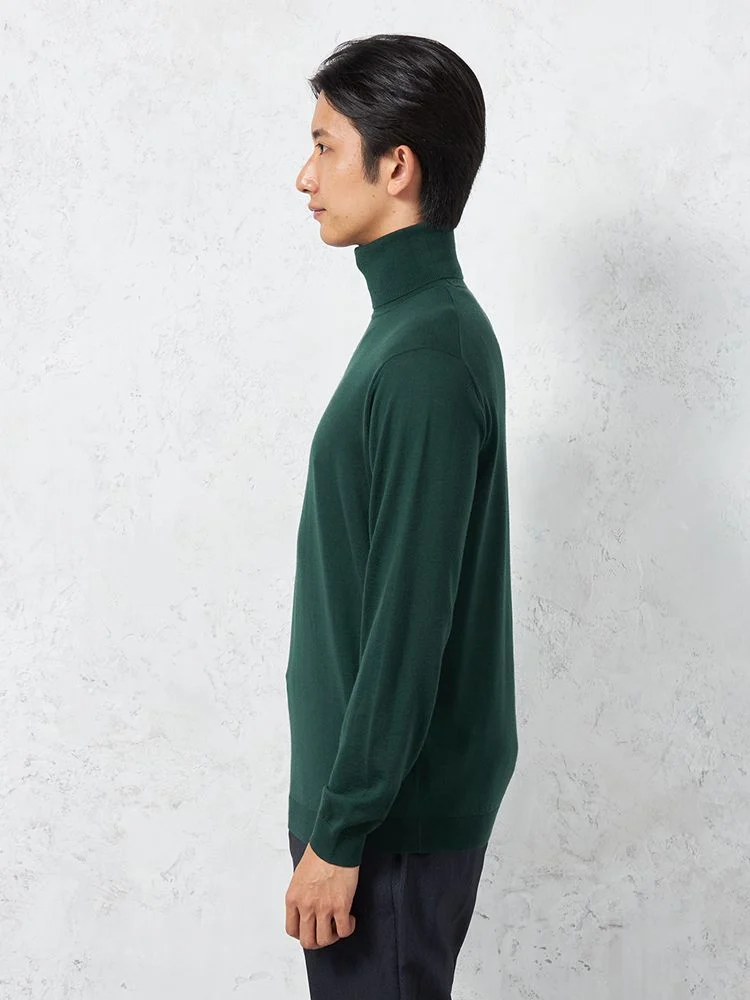 美しい光沢感となめらかな肌ざわりが魅力のメリノウールを使用した長袖タートルネックです。