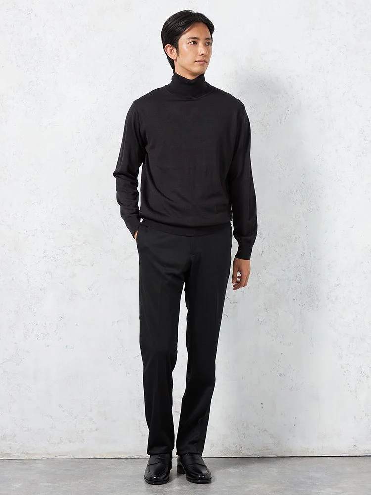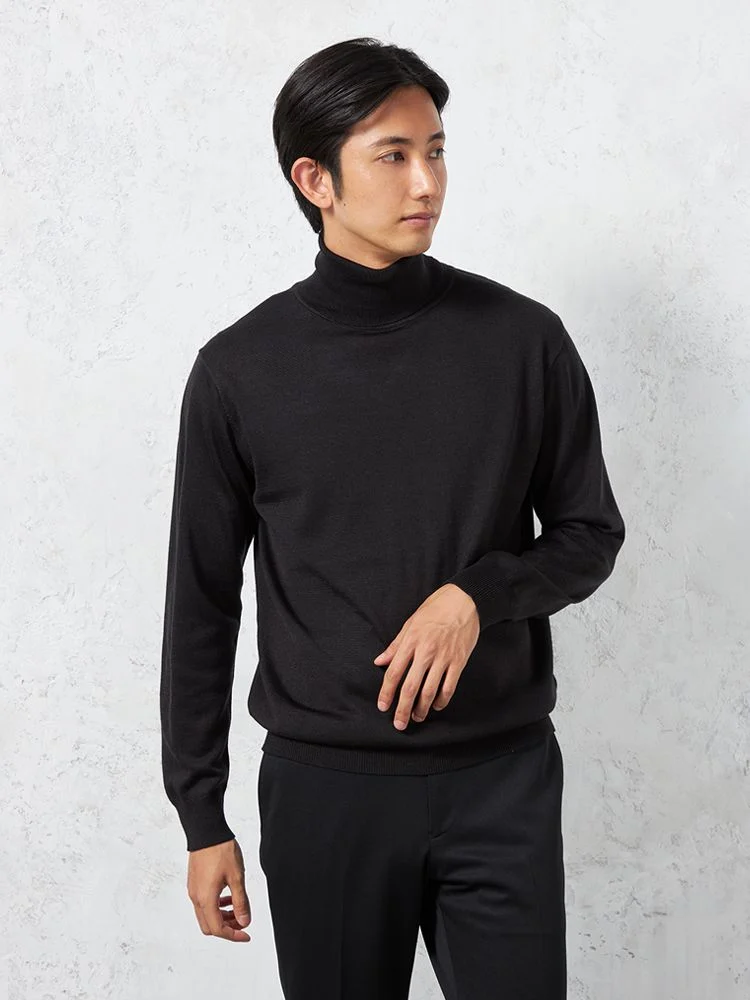 【制電&抗ピリング】天竺 タートルネック セーター カジュアルインナー 無地 リッケンバッカー 秋冬(ブラック)