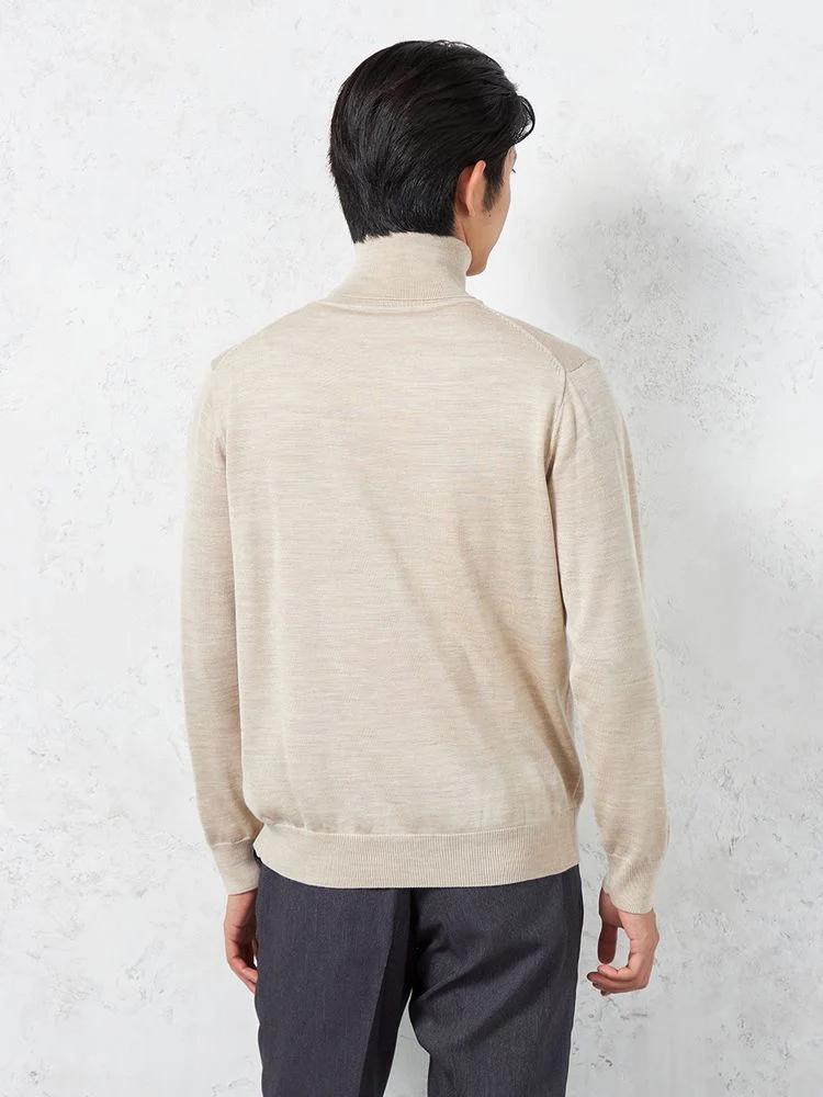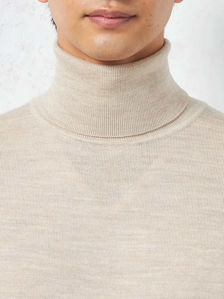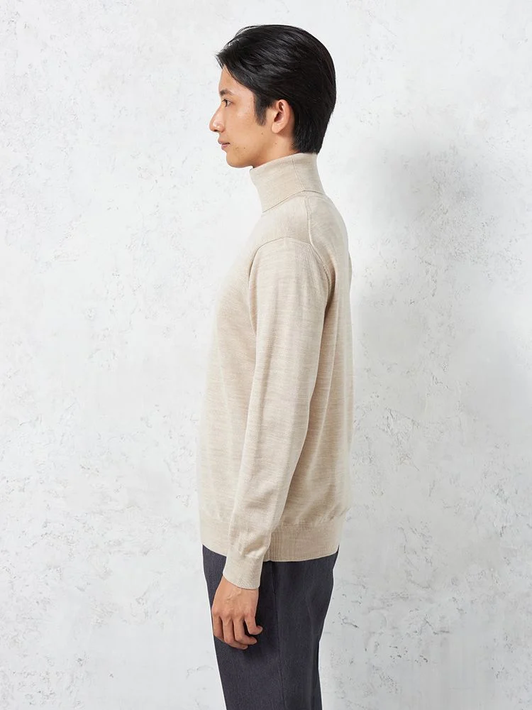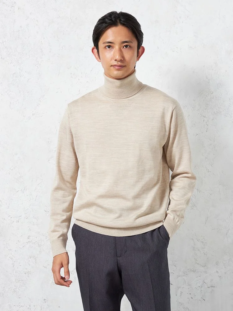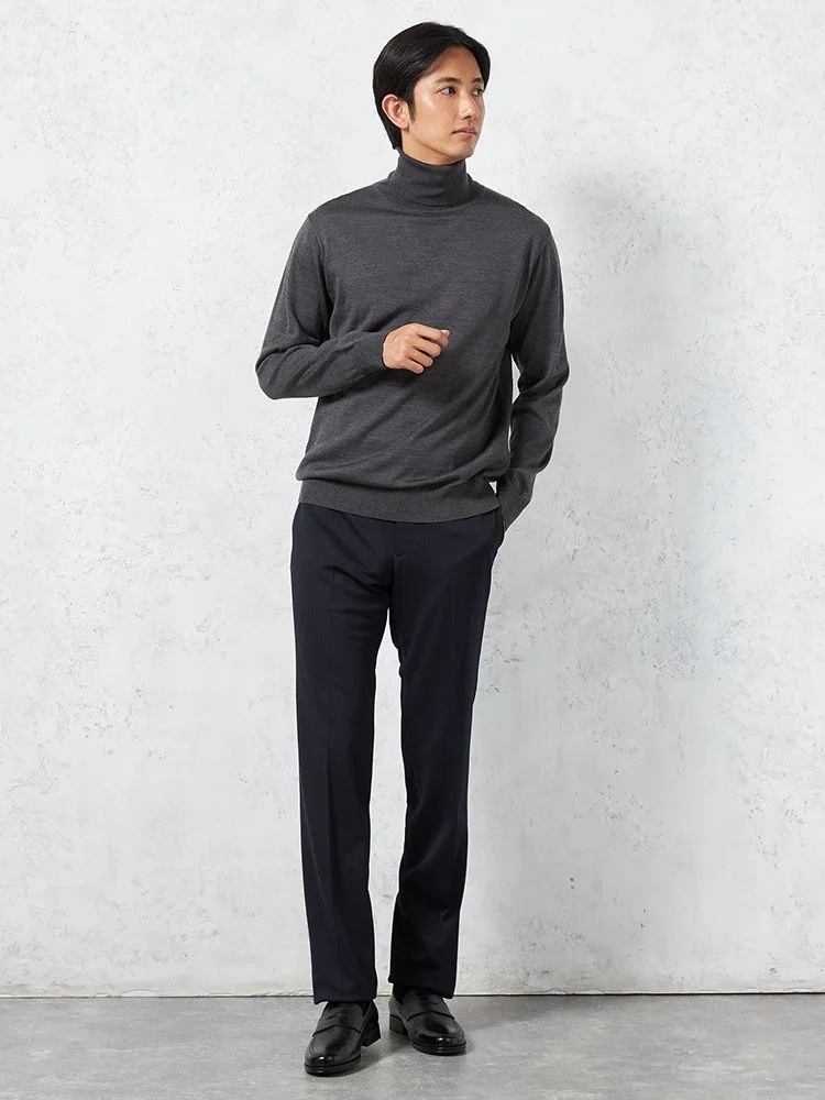 重ね着スタイルにも適している、程よい厚みの長袖タートルネックです。