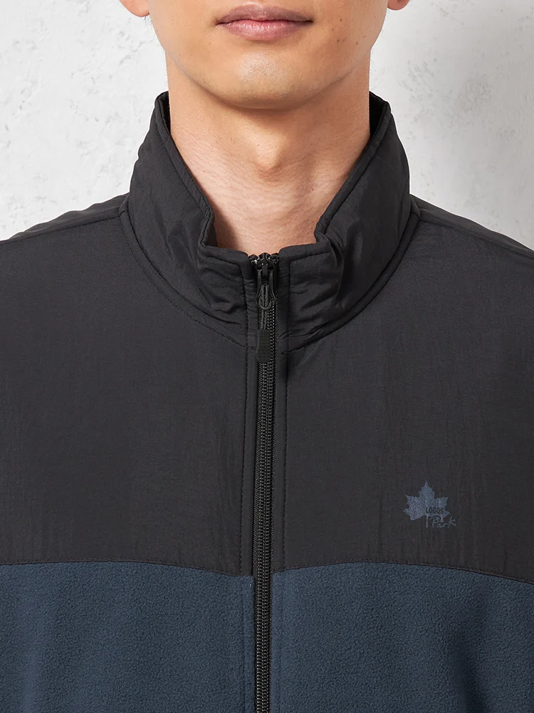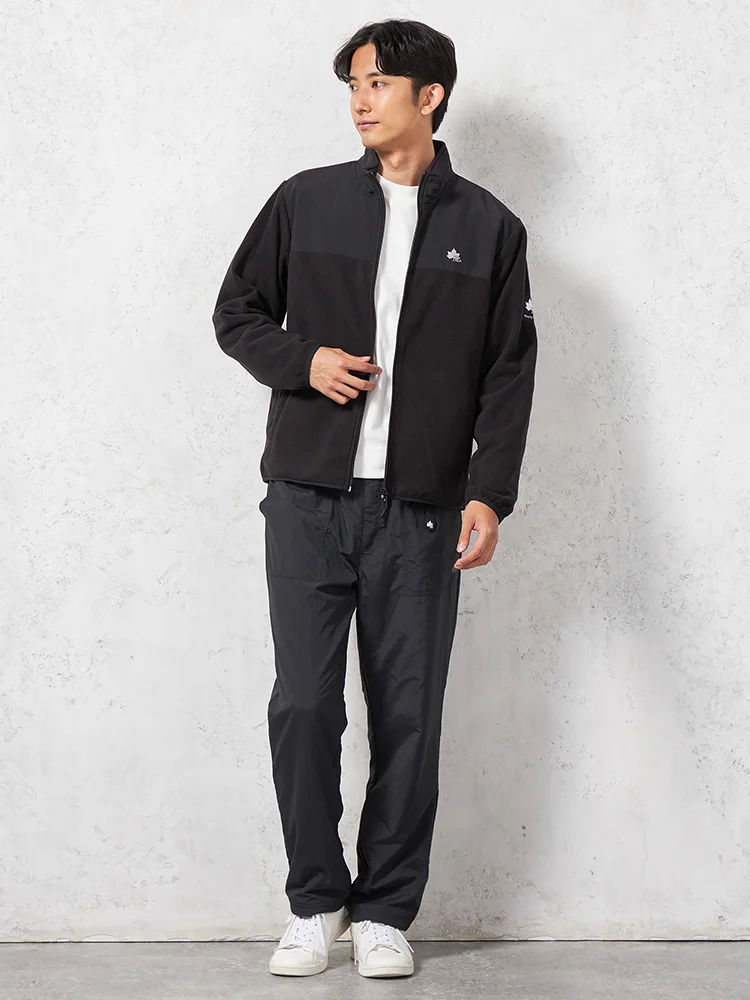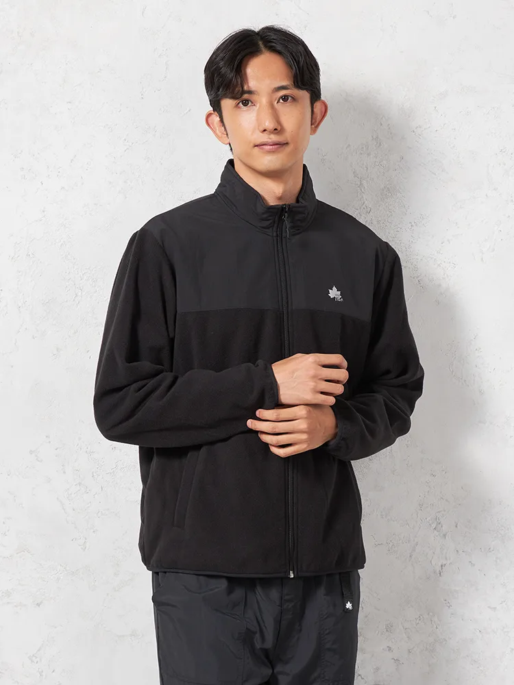 【LOGOS-ロゴス-】 布帛切替フリースブルゾン カジュアルアウター 無地 秋冬(ブラック)