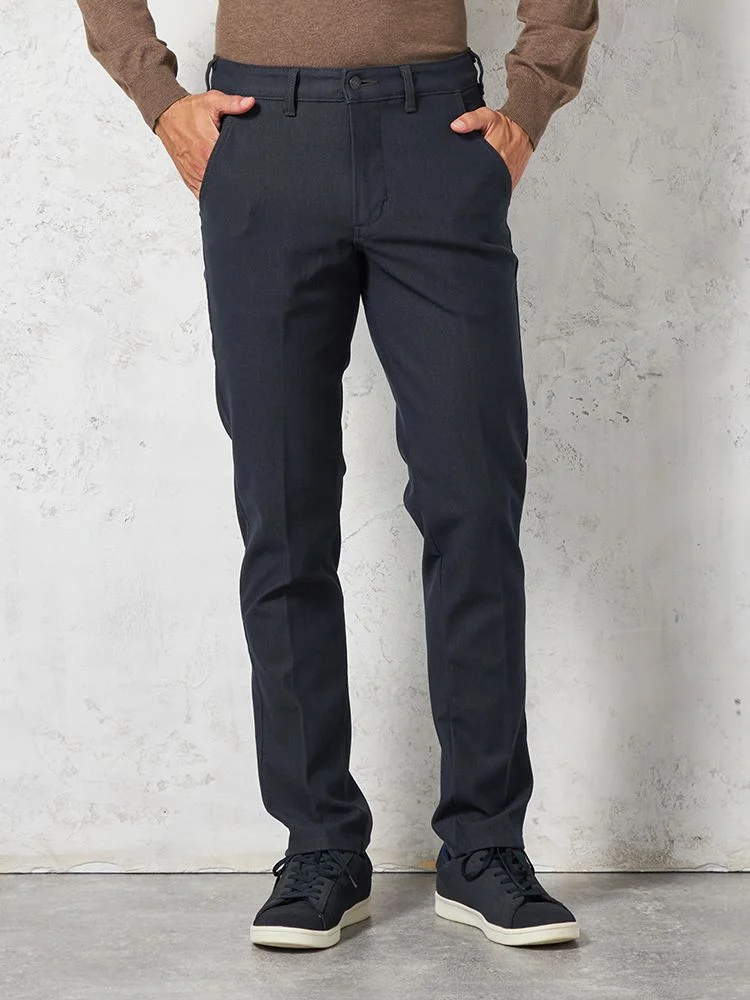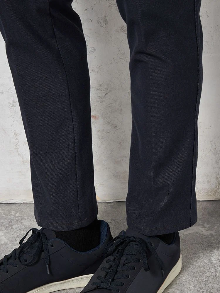クリースラインやテーパードシルエットにより、スタイリッシュな印象に。