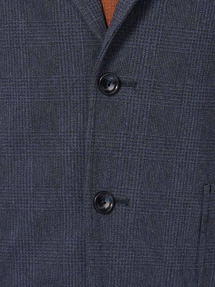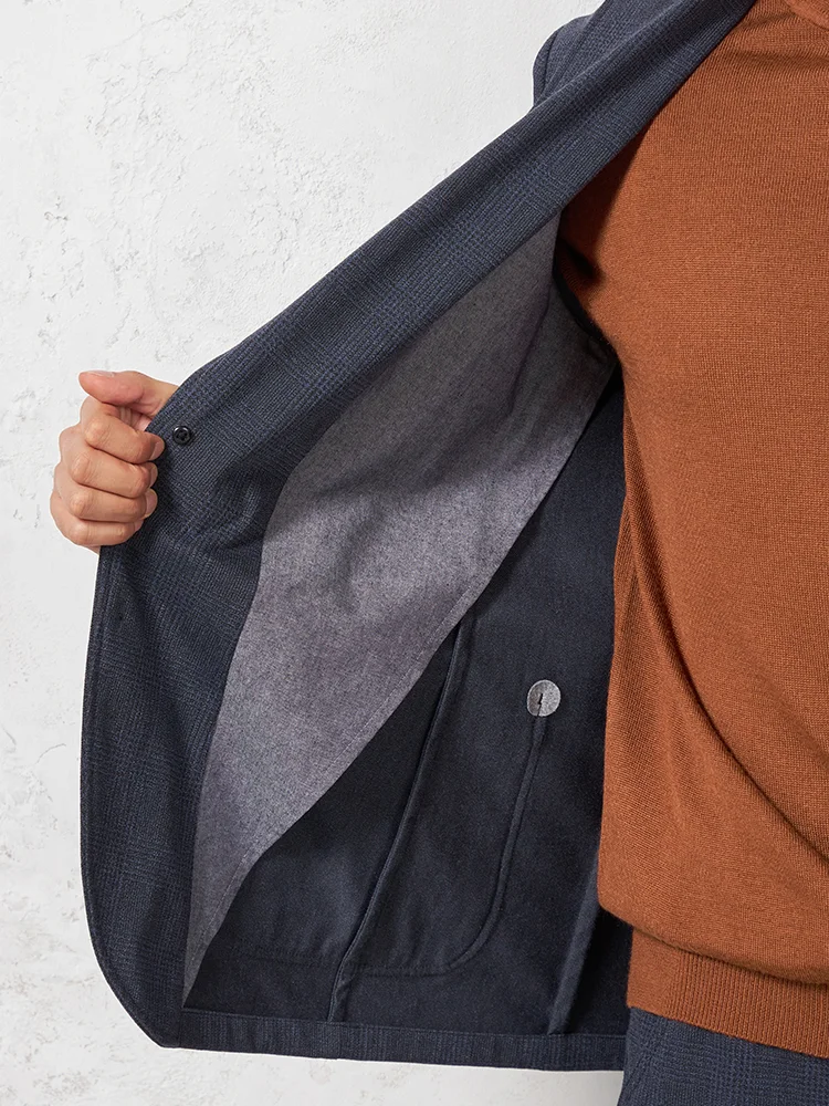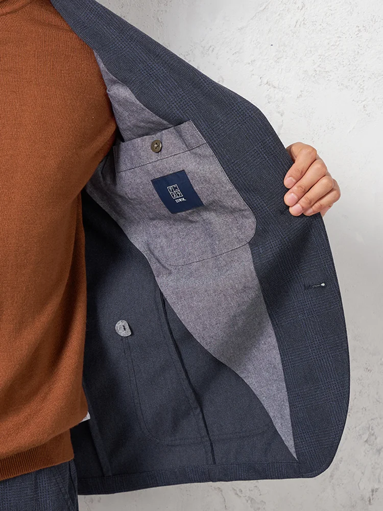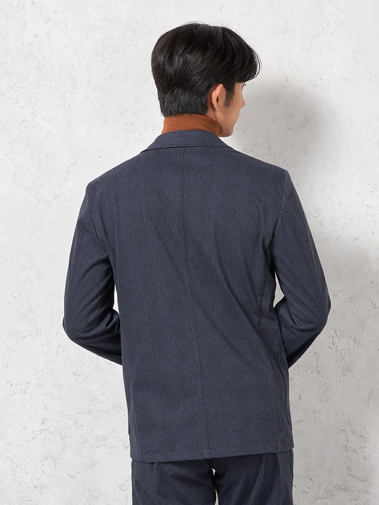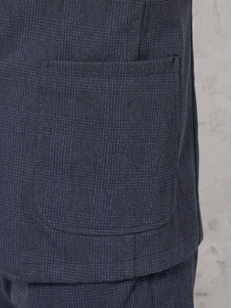 ストレッチ性のあるニットデニム素材にプリントを施しグレンチェック柄を表現したテーラードジャケット。