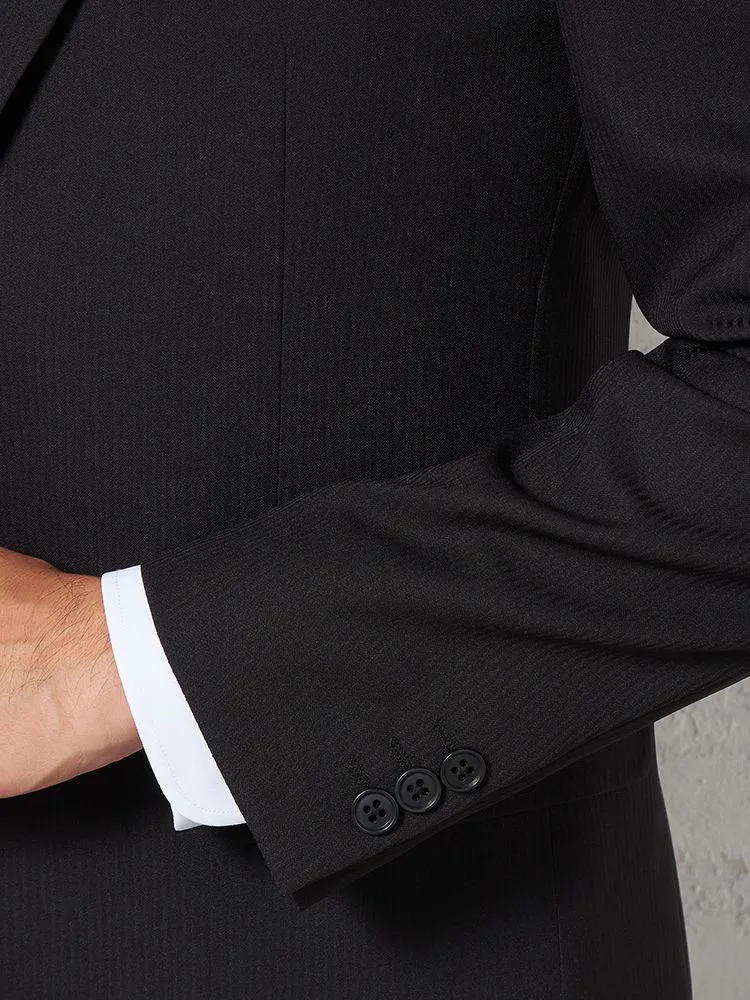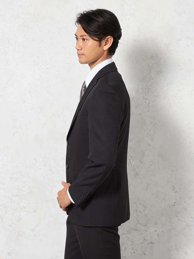 【即納】スーツ 2つボタン【WEB限定】4WAYストレッチ シャドウストライプ ブラック 通年
