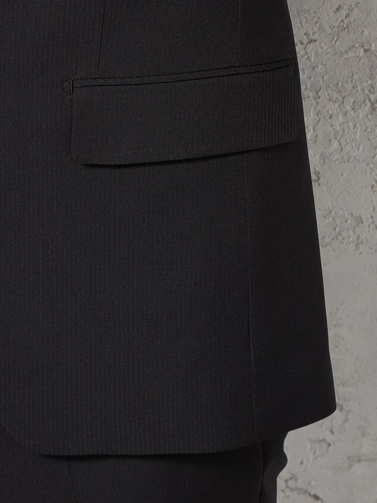 切り込みが1本のセンターベントデザインです。細身でスッキリとしたシルエットが特徴で、快適な着心地を提供します