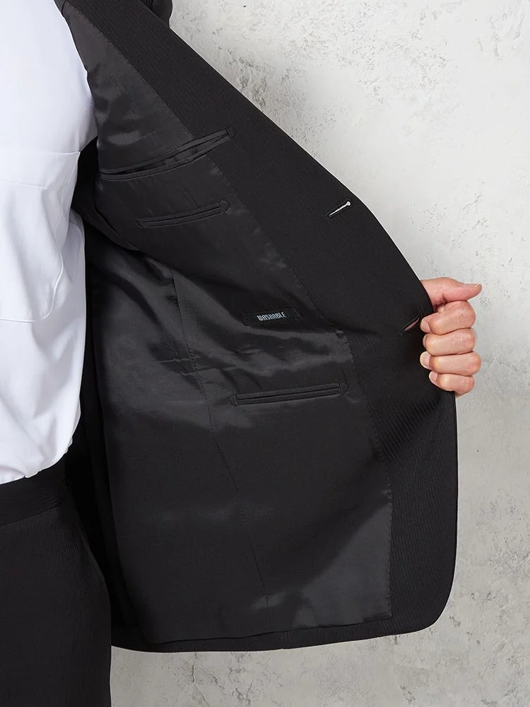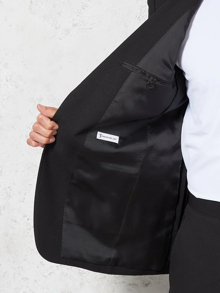 さりげないシャドウストライプ柄が深みのあるブラックに柔らかな表情をプラスします。