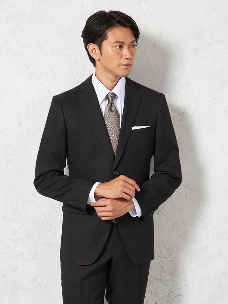 • スーツ 2つボタン【WEB限定】4WAYストレッチ シャドウストライプ ブラック 通年 1207762586