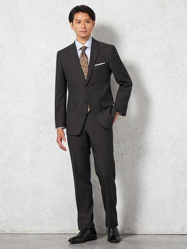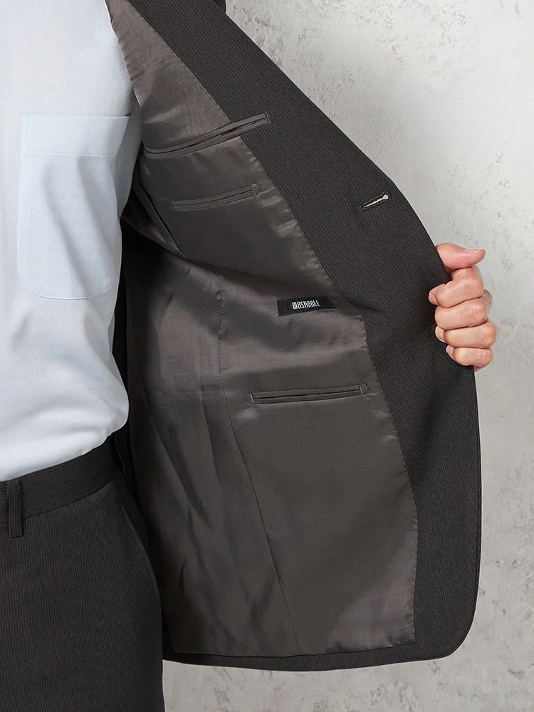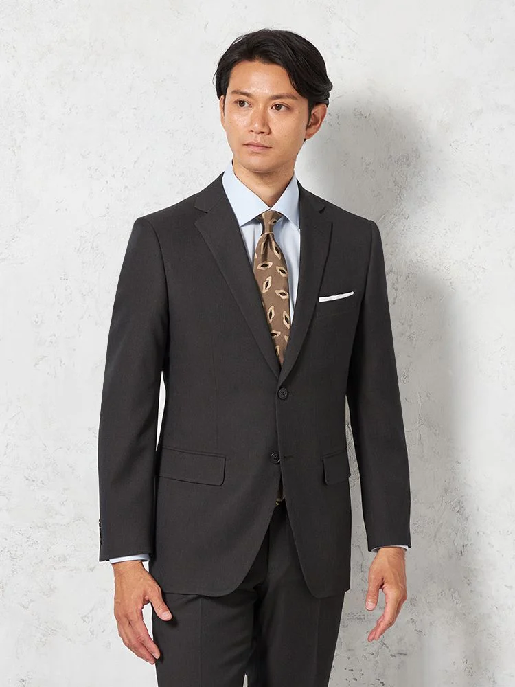 • スーツ 2つボタン【WEB限定】4WAYストレッチ ストライプ チャコールグレー 通年 1207762543